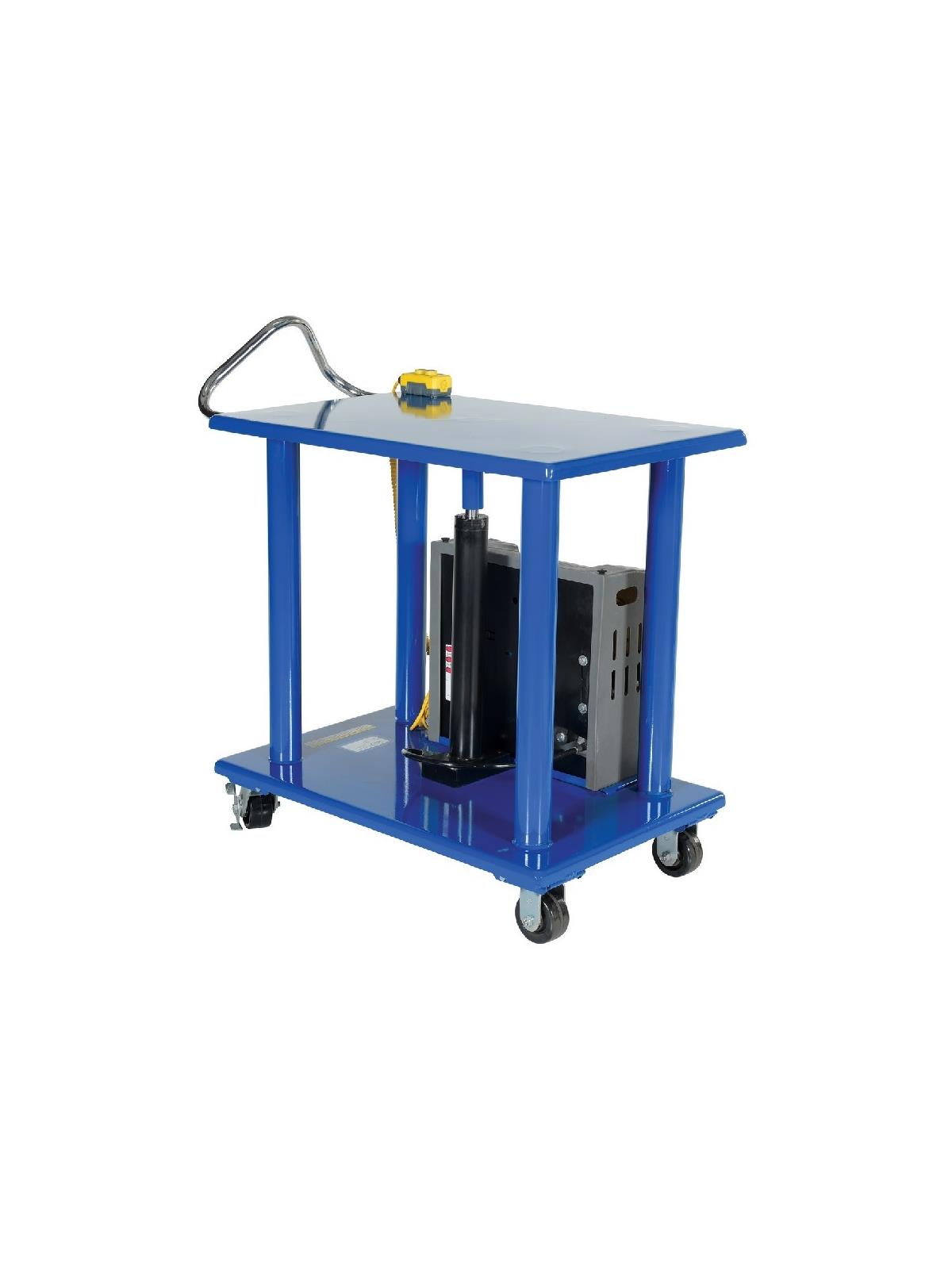 Hydraulic center post lifts tabletop with rigidity. Models with corner posts are telescoping to help stabilize and fully support the load during operation. Rolls smoothly on durable heavy duty casters. FOB Shipping Point. Due to tariffs and market conditions, pricing subject to change.