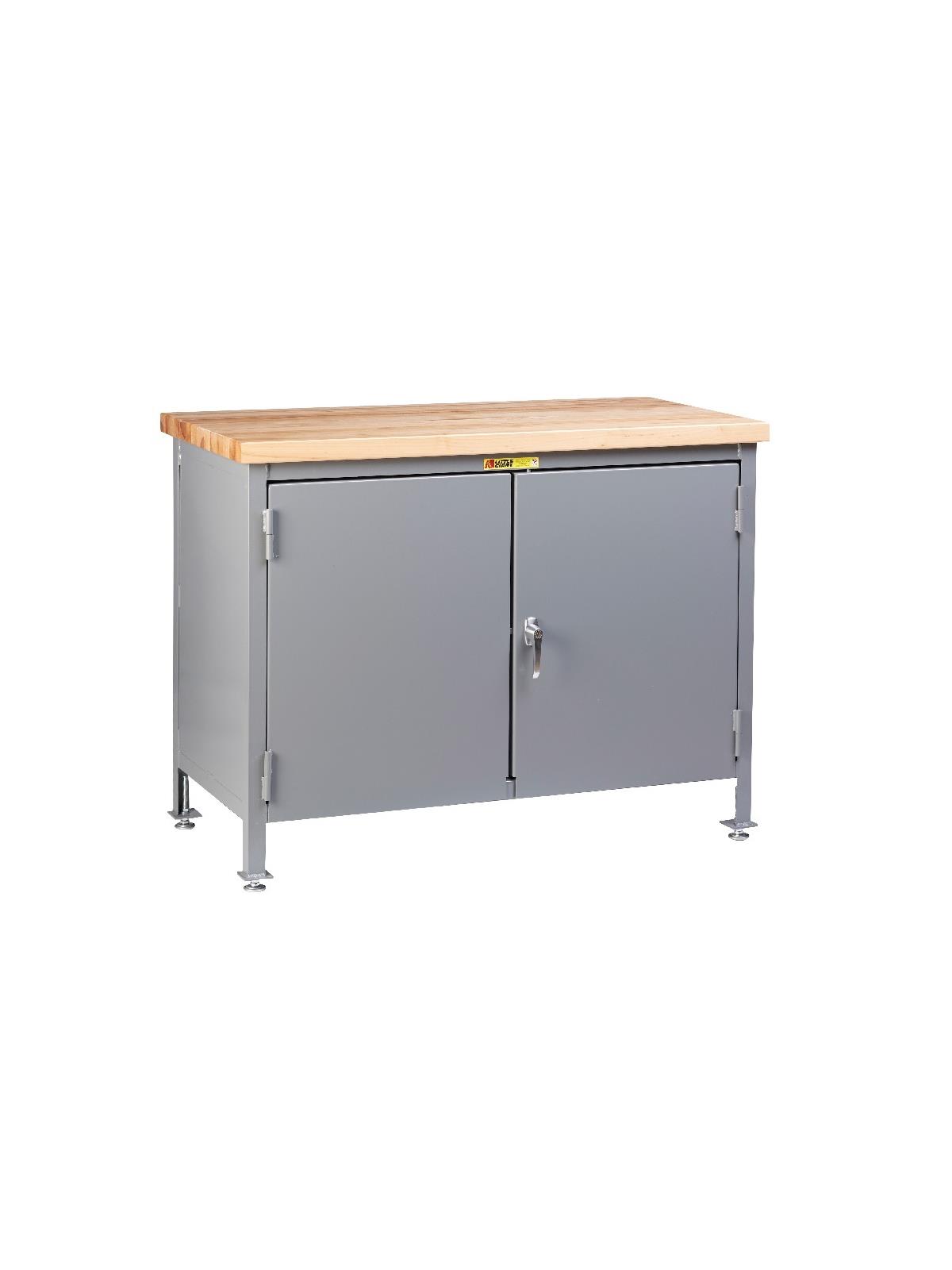 1-3/4" butcher block top provides a durable, yet forgiving work surface. The nonconductive butcher block top is securely attached to the all-welded, heavy-duty, 12 gauge steel cabinet. Features a keyed handle with a 3-point locking mechanism. 37" overall height. 26" high interior cabinet clearance. Fully assembled and ready for immediate use. FOB Shipping Point.