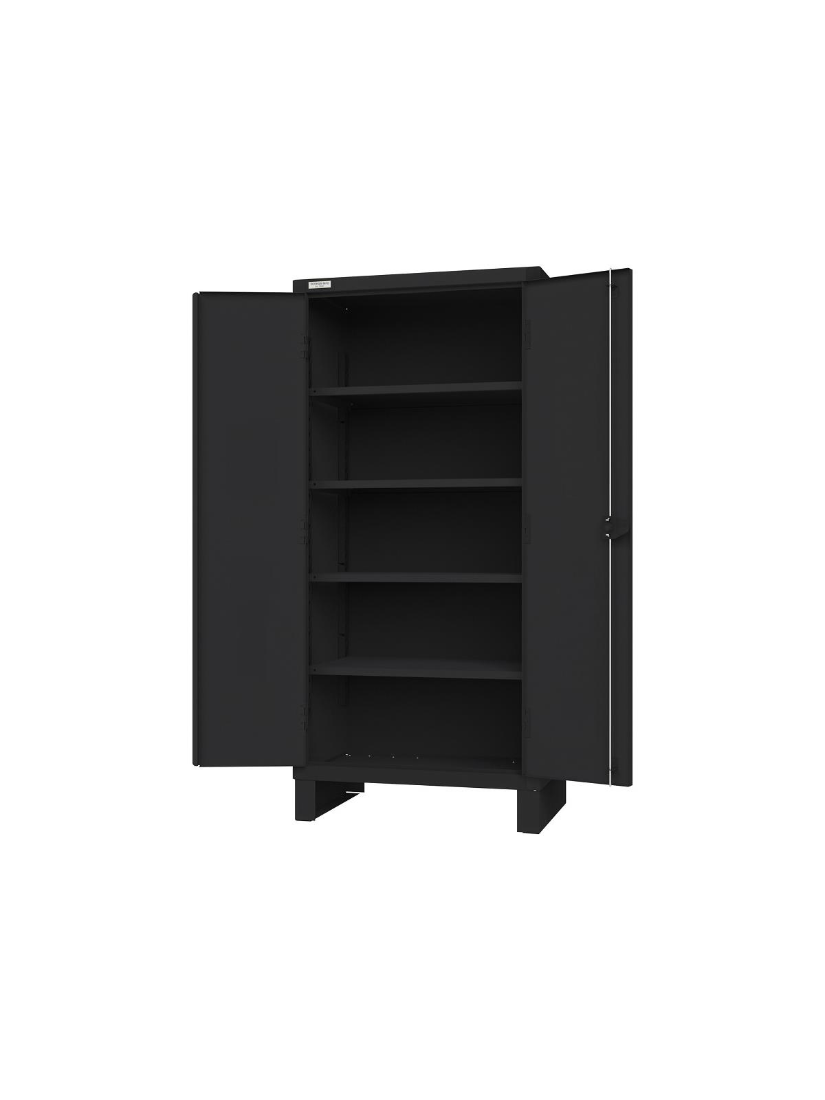 6"H base/legs which provide access for forklifts; pre-punched holes allow for bolting to the floor.