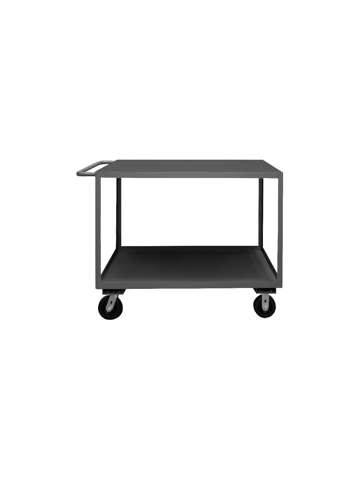 Shelf carts are constructed with 1-1/2" x 1/8" angle iron uprights for added strength. Heavy duty 14 gauge steel shelves. Sturdy tubular push handle. Perfect for transporting heavier parts or stock items. Shelf Stock Carts are available in 1,200 lbs. or 3,000 lbs. capacities. FOB Shipping Point.