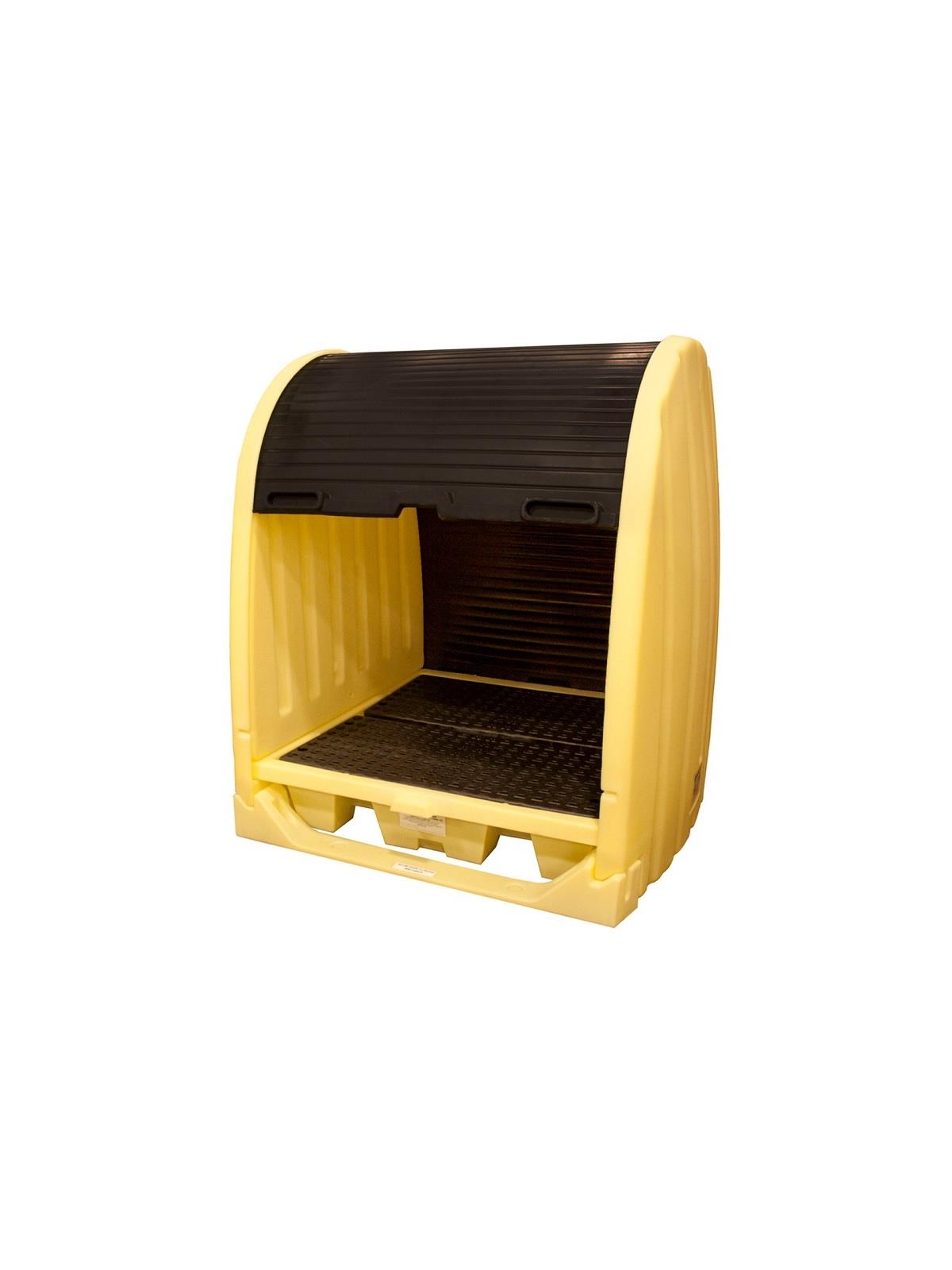 The convenience of outdoor storage meets the reliability of spill containment with the Hardcover. Lockable rolling doors provide access to drums from either side of the unit while offering additional accountability. The base of these products is a fully compliant spill pallet enclosed by a rugged, weather resistant shell. FOB Shipping Point.