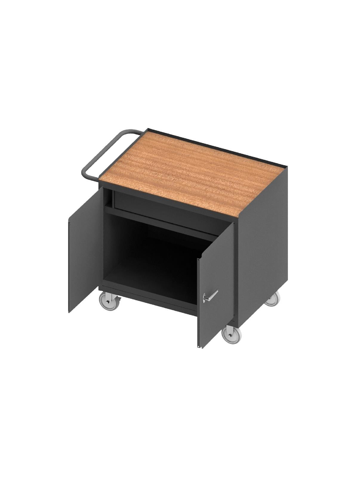 Bench cabinets are constructed of 14 gauge steel. Convenient sturdy work surface with back and end stops on the work surface prevents parts from falling off during transport (MT units not included). Tubular handle for easy maneuverability. Cabinet doors have a 3 point locking system with 4 keys. Rolls smoothly on 5" polyurethane bolt-on casters, (2) swivel with side brakes and (2) rigid. 36"W model has 1,200 lbs. capacity. 48"W model has 2,000 lbs. capacity and includes a floor lock to keep the unit in place while you work. FOB Shipping Point.