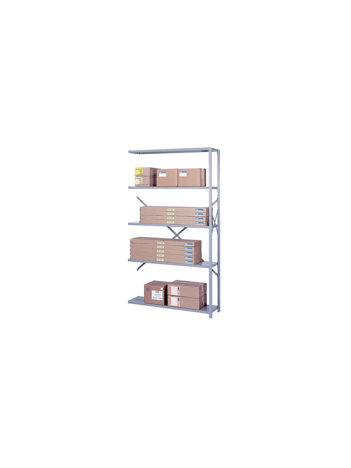 Yields more shelf space for long awkward items. Order one starter unit and the balance as adders to make up a row of shelving. Five shelf unit (four openings). FOB Shipping Point.
