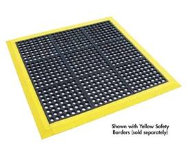 This interlocking drainage mat contains the highest level of grease and petroleum resistance and is made of 100% nitrile. It's ideal for demanding industrial and kitchen environments exposed to oil and grease spills. Modular 3 x 3' mats are lightweight and easy to handle for easy clean-up. Will not deteriorate from the effect of petroleum, oils and fats. Nib backing elevates mat above the surface for improved drainage and large holes allows debris to fall through. Choose the gritted surface for extra traction. FOB Shipping Point.