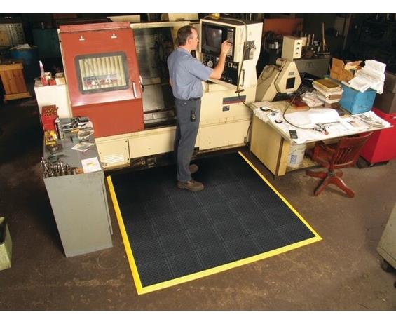 Cushion-Ease® Ergo™ is a high performance interlocking anti-fatigue matting system made with a resilient rubber compound with a solid top anti-slip surface texture and a multi-nib backing for comfort and ergonomic support of the mat. Cushion-Ease® Ergo™ mold has been engineered to produce a mat that is functional, comfortable and durable. All Cushion-Ease® series mats have a male/female interlocking system for individual workstations, long runs, unique configurations and wall-to-wall floors. FOB Shipping Point.