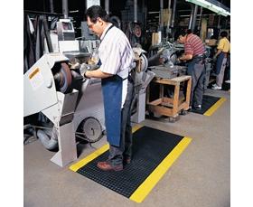 Saddle Trax® is a thicker, heavier and stronger anti-fatigue floor mat, engineered to meet the toughest requirements of today's industrial applications. At a full one-inch thick, it is the ultimate anti-fatigue product maximizing worker productivity and comfort. The durable vinyl diamond-plate design provides non-directional traction. The top surface is combined with a dense closed cell foam base utilizing Notrax® exclusive UniFusion™ technology virtually eliminating the possibility of de-lamination. All Notrax® laminate floor mats come standard with RedStop™, a uniquely engineered non-slip backing technology that eliminates the slipping and sliding of floor mats on smooth surface flooring such as tile, wood, marble, and treated concrete. FOB Shipping Point.
