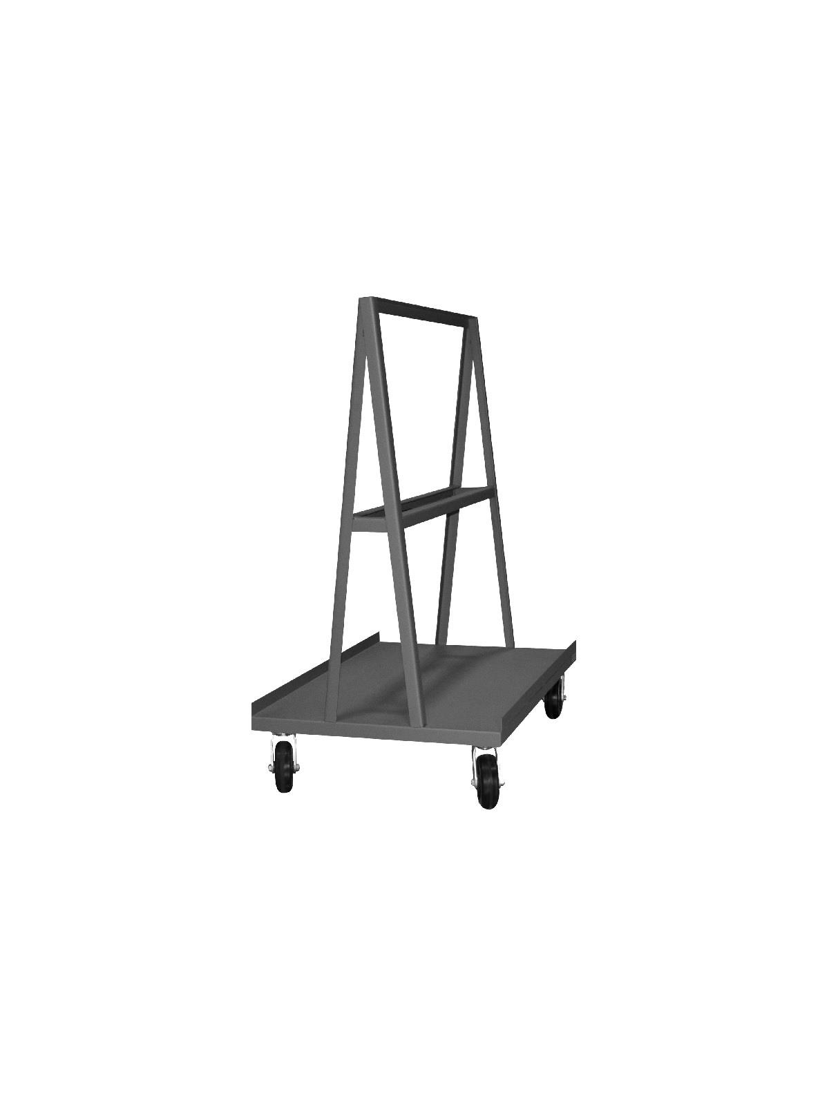 1-1/2" angle iron frame. 12 gauge, steel deck with reinforced channels underneath. 1-1/2" lip on deck prevents parts from falling off during transport. 6 x 2" phenolic casters; (4) swivel. Ships fully assembled. Durable, gray, textured powder coat finish. FOB Shipping Point.