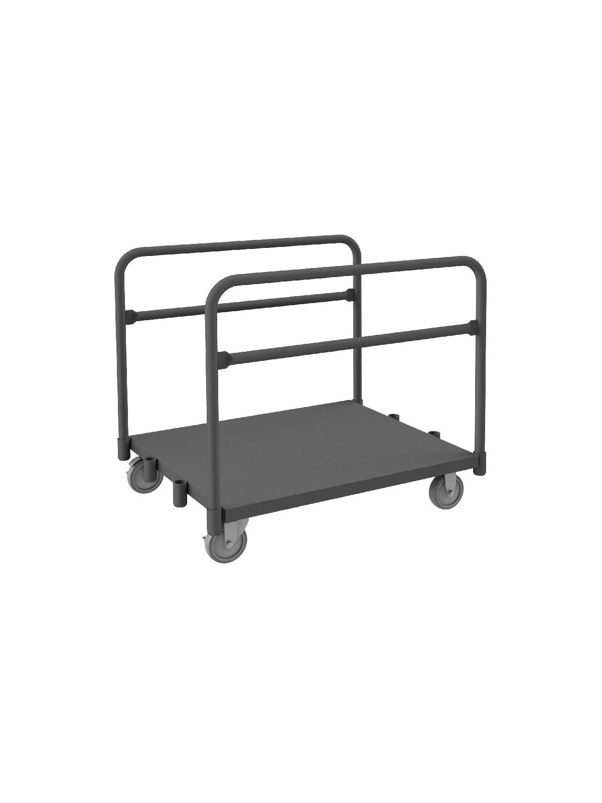 Easy to access and pick up on-board product. Create multiple opening sizes by adjusting dividers. All casters: 2 rigid, 2 swivel. Allows for the storage and transportation of various sizes of panels and product. Gray, textured, powder coat finish. FOB Shipping Point.