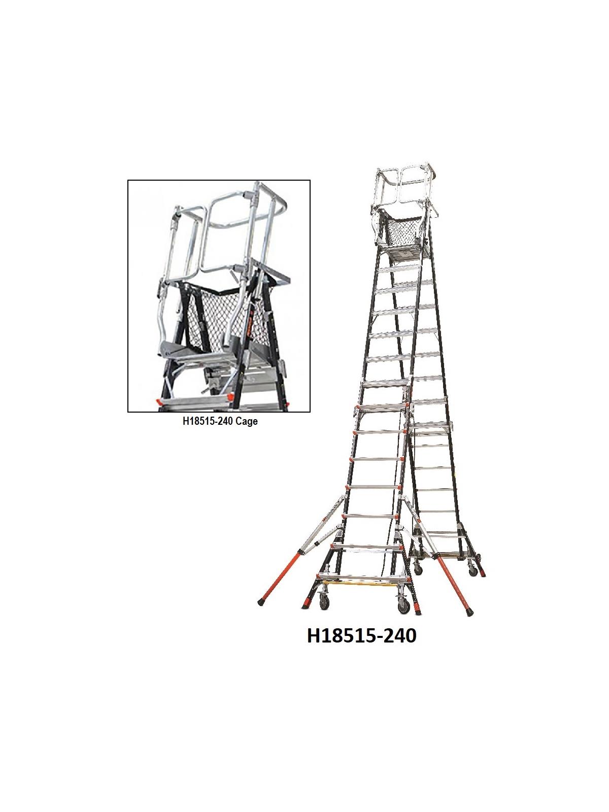 The Cage is constructed of non-conductive, high strength fiberglass-resin composite and is fully adjustable in one-foot increments, allowing the operator to adjust the platform height to the job at hand. Each side adjusts independently, so operators can also use the Cage over uneven surfaces or stairs, where a mechanical lift or ordinary stepladder could never go. The Cage protects operators in a fully enclosed working platform, allowing them to work safely and quickly with two hands while complying with industry regulations. Time and energy saving Tip & Glide™ Wheels make it quick and easy to move from job to job. Type IAA ANSI Duty rating 377 lb. weight capacity. FOB Shipping Point. Surcharges may apply.
