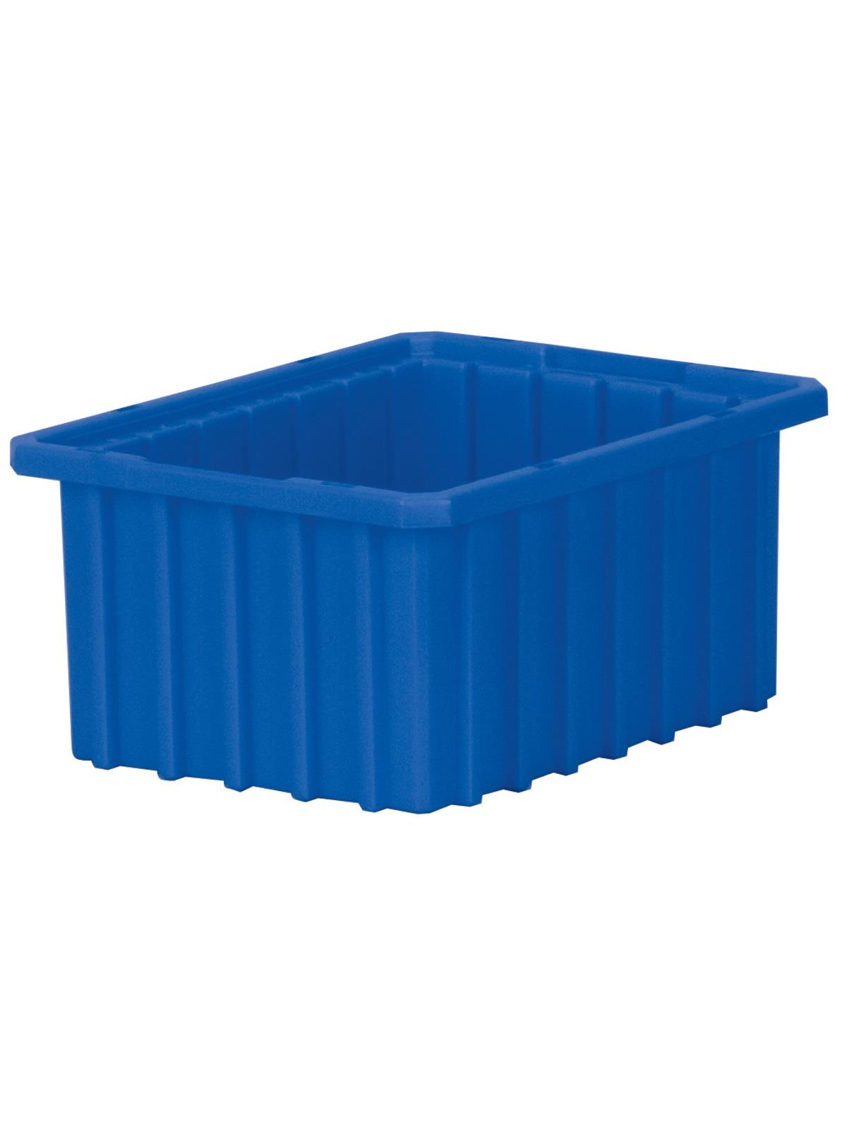 Intersecting dividers allow the container to be subdivided in separate compartments as small as 1-1/8" sq. Injection-molded from high density polyethylene -- resists most solvents and chemicals. Compatible with most racks, shelving and automated material handling equipment. Available in Red, Blue, or Gray. Dividers and lids sold separately. FOB Shipping Point.