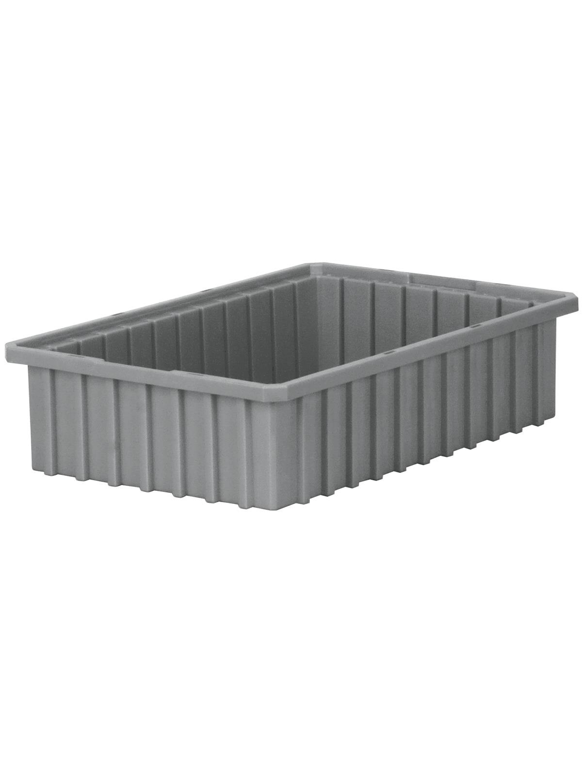 Intersecting dividers allow the container to be subdivided in separate compartments as small as 1-1/8" sq. Injection-molded from high density polyethylene -- resists most solvents and chemicals. Compatible with most racks, shelving and automated material handling equipment. Available in Red, Blue, or Gray. Dividers and lids sold separately. FOB Shipping Point.