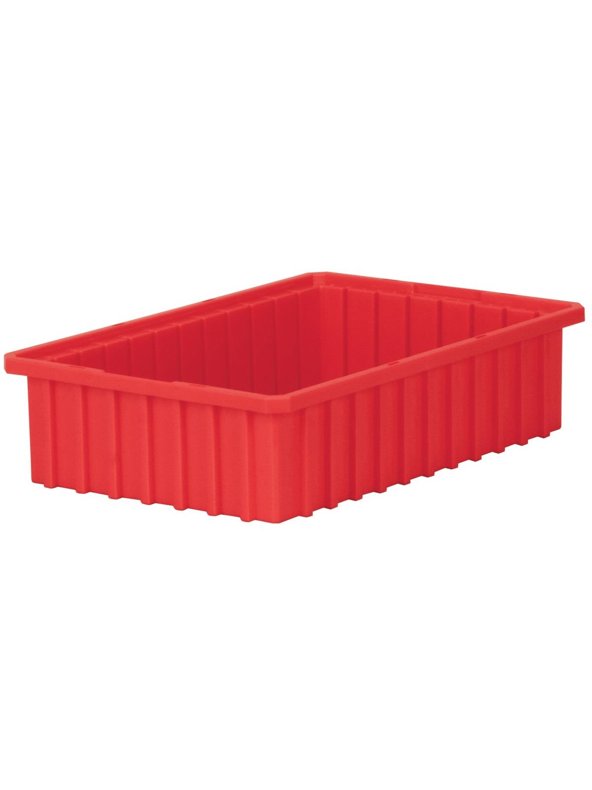 Intersecting dividers allow the container to be subdivided in separate compartments as small as 1-1/8" sq. Injection-molded from high density polyethylene -- resists most solvents and chemicals. Compatible with most racks, shelving and automated material handling equipment. Available in Red, Blue, or Gray. Dividers and lids sold separately. FOB Shipping Point.