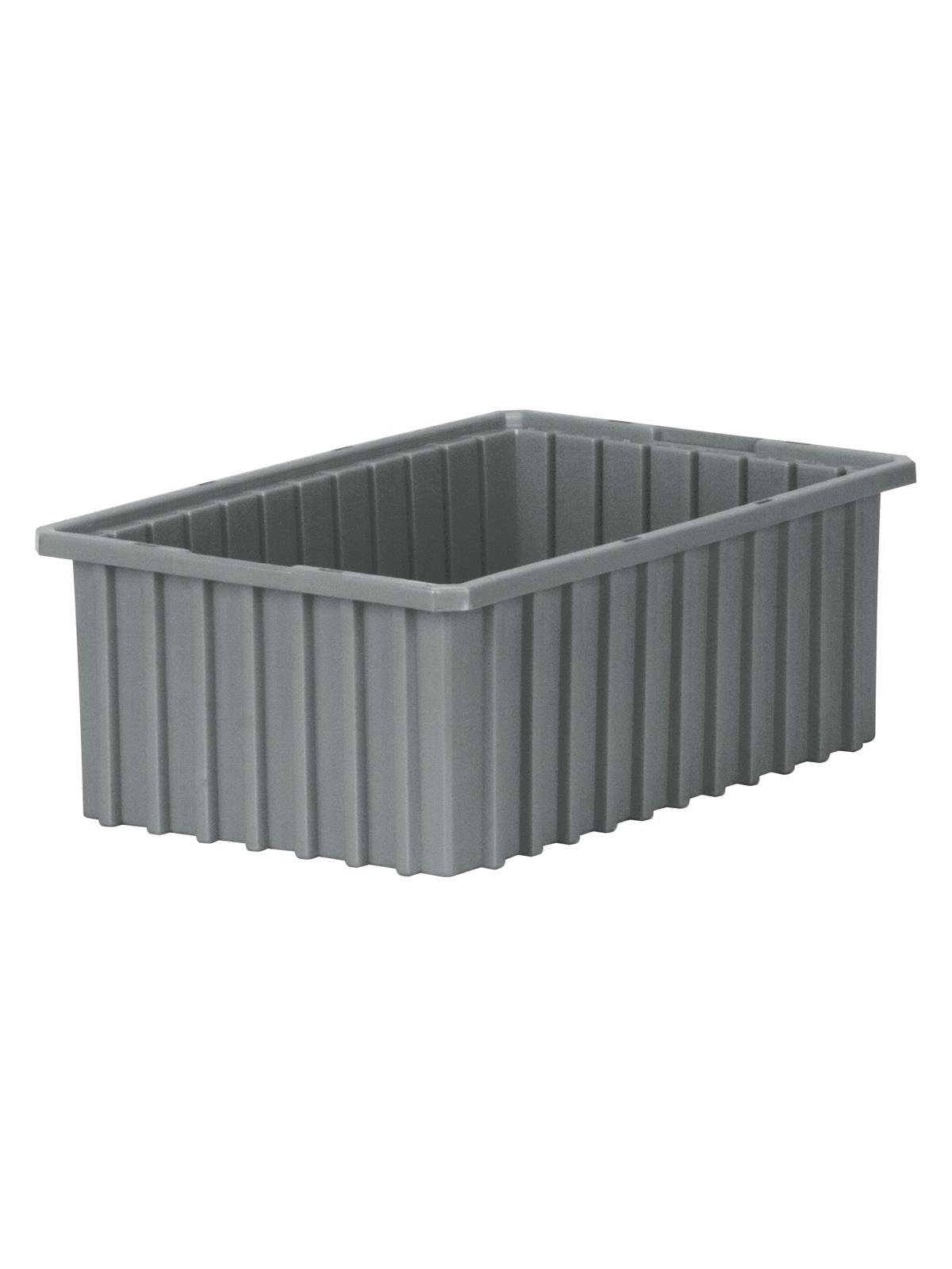 Intersecting dividers allow the container to be subdivided in separate compartments as small as 1-1/8" sq. Injection-molded from high density polyethylene -- resists most solvents and chemicals. Compatible with most racks, shelving and automated material handling equipment. Available in Red, Blue, or Gray. Dividers and lids sold separately. FOB Shipping Point.