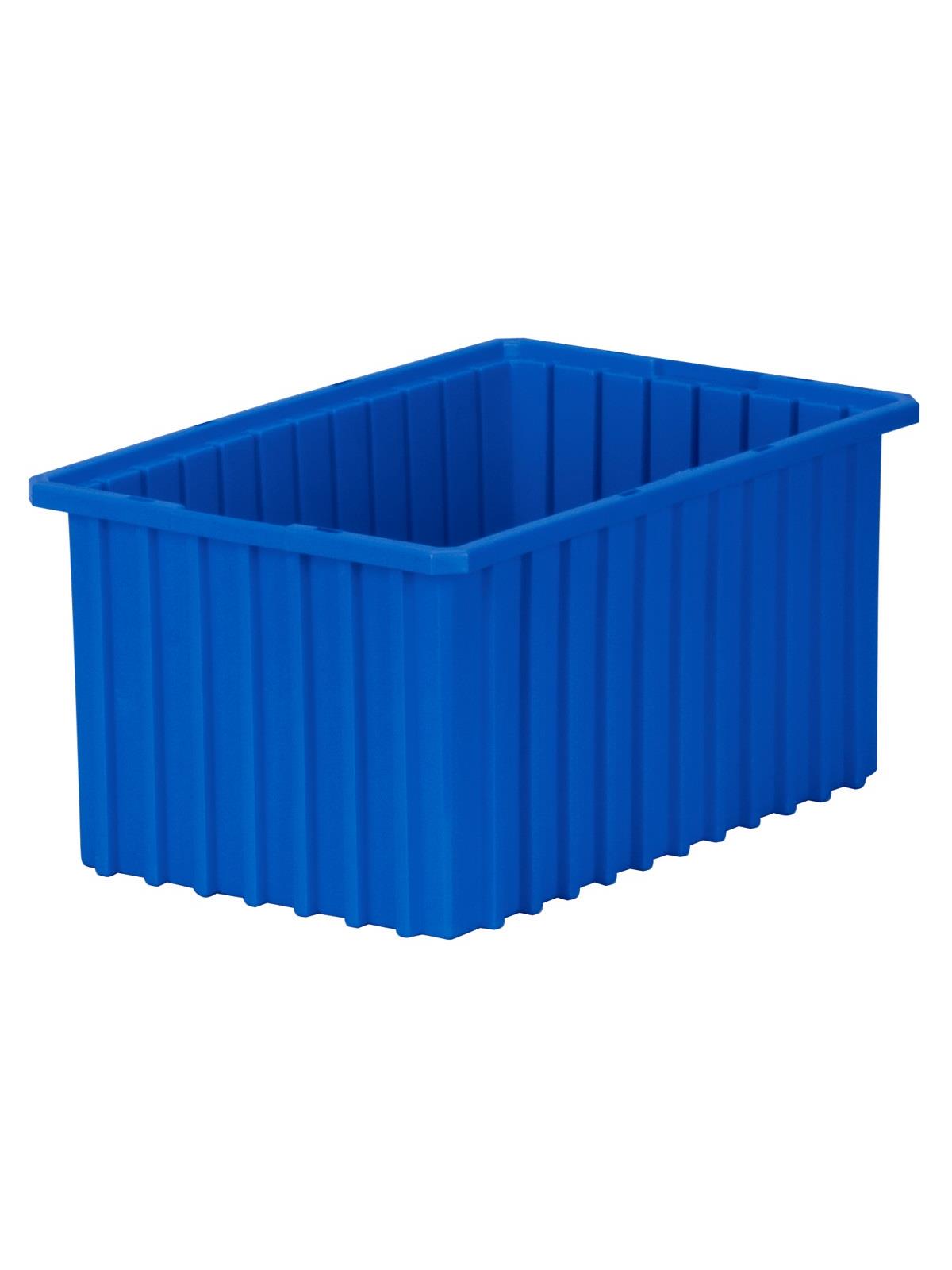 Intersecting dividers allow the container to be subdivided in separate compartments as small as 1-1/8" sq. Injection-molded from high density polyethylene -- resists most solvents and chemicals. Compatible with most racks, shelving and automated material handling equipment. Available in Red, Blue, or Gray. Dividers and lids sold separately. FOB Shipping Point.