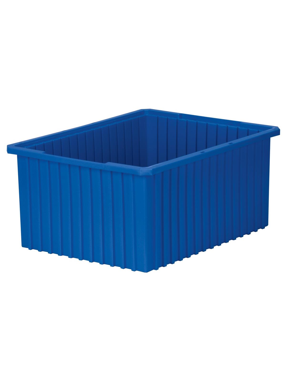 Intersecting dividers allow the container to be subdivided in separate compartments as small as 1-1/8" sq. Injection-molded from high density polyethylene -- resists most solvents and chemicals. Compatible with most racks, shelving and automated material handling equipment. Available in Red, Blue, or Gray. Dividers and lids sold separately. FOB Shipping Point.