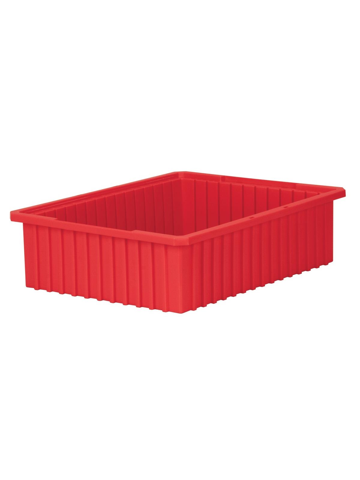 Intersecting dividers allow the container to be subdivided in separate compartments as small as 1-1/8" sq. Injection-molded from high density polyethylene -- resists most solvents and chemicals. Compatible with most racks, shelving and automated material handling equipment. Available in Red, Blue, or Gray. Dividers and lids sold separately. FOB Shipping Point.