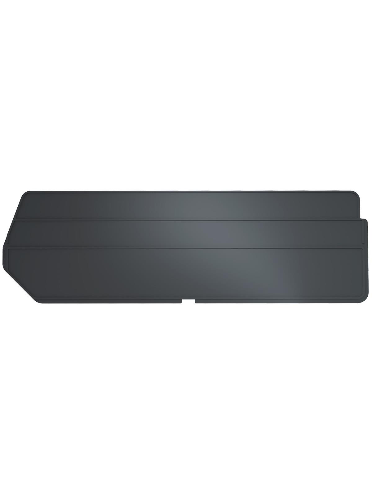 Dividers slip into grooves on the inside of the bins (sold separately). Lengthwise dividers keep items separated in the bin and are available in black. Cross dividers divide bins widthwise and are black. FOB Shipping Point.
