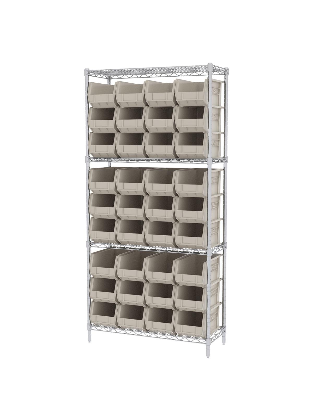 A wide variety of shelf configurations are possible with three sizes of shelving available. Durable AkroBins® feature a curved bottom hopper front, to enable easy access of small parts. Bins available in Blue, Red, Yellow, Stone, Green, or Semi-Clear. FOB Shipping Point.