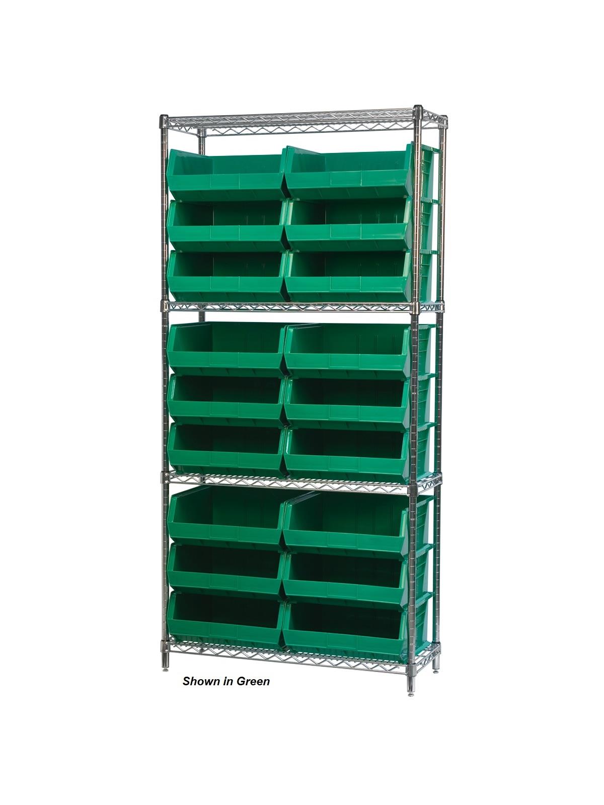 A wide variety of shelf configurations are possible with three sizes of shelving available. Durable AkroBins® feature a curved bottom hopper front, to enable easy access of small parts. Bins available in Blue, Red, Yellow, Stone, Green, or Semi-Clear. FOB Shipping Point.