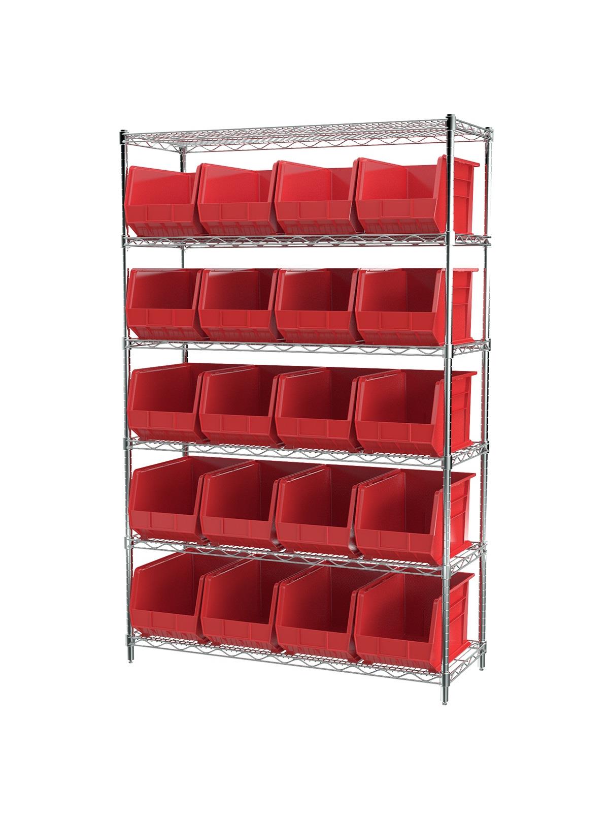 A wide variety of shelf configurations are possible with three sizes of shelving available. Durable AkroBins® feature a curved bottom hopper front, to enable easy access of small parts. Bins available in Blue, Red, Yellow, Stone, Green, or Semi-Clear. FOB Shipping Point.