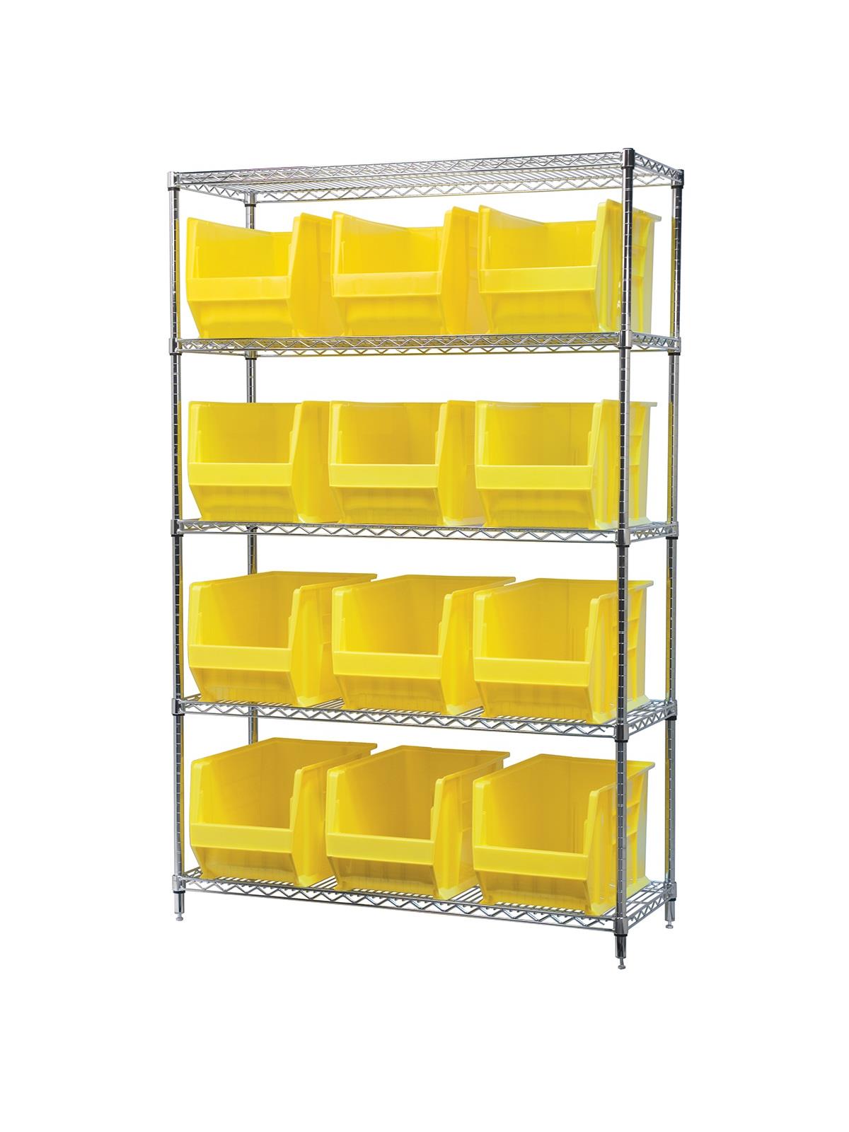A wide variety of shelf configurations are possible with three sizes of shelving available. Durable AkroBins® feature a curved bottom hopper front, to enable easy access of small parts. Bins available in Blue, Red, Yellow, Stone, Green, or Semi-Clear. FOB Shipping Point.