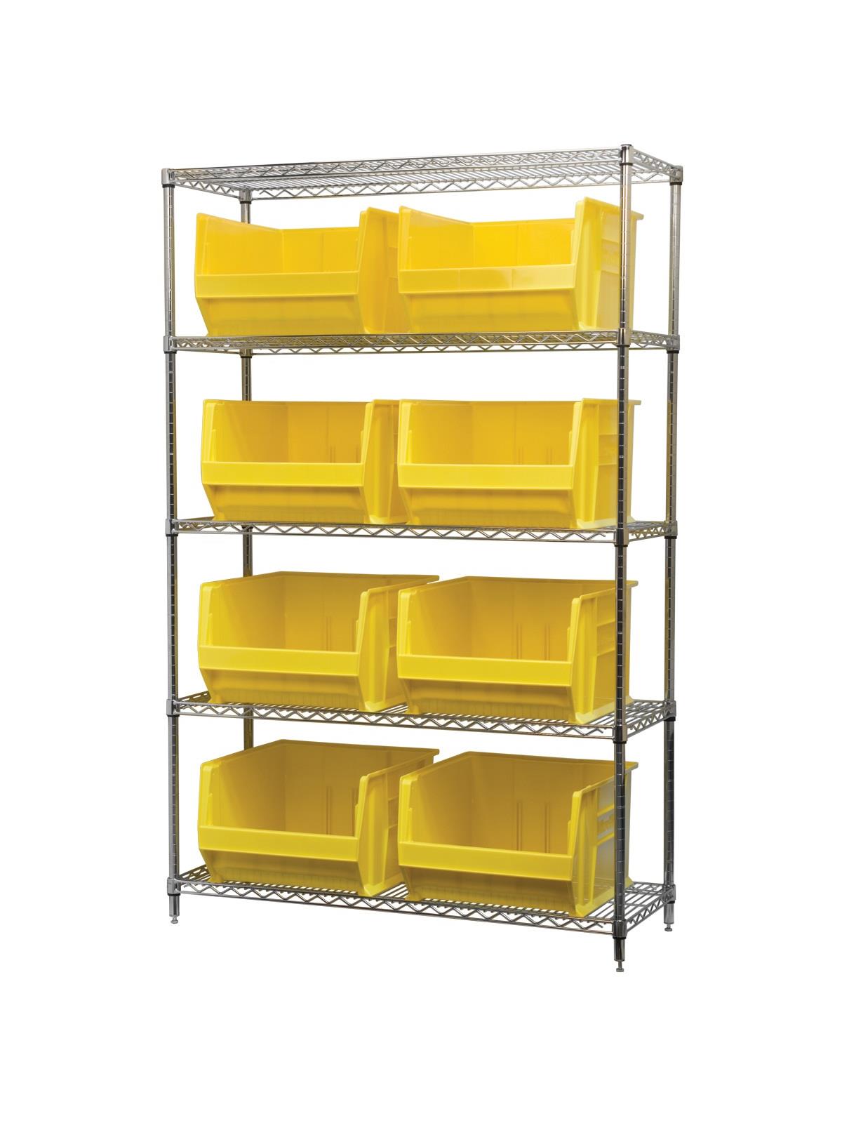 A wide variety of shelf configurations are possible with three sizes of shelving available. Durable AkroBins® feature a curved bottom hopper front, to enable easy access of small parts. Bins available in Blue, Red, Yellow, Stone, Green, or Semi-Clear. FOB Shipping Point.