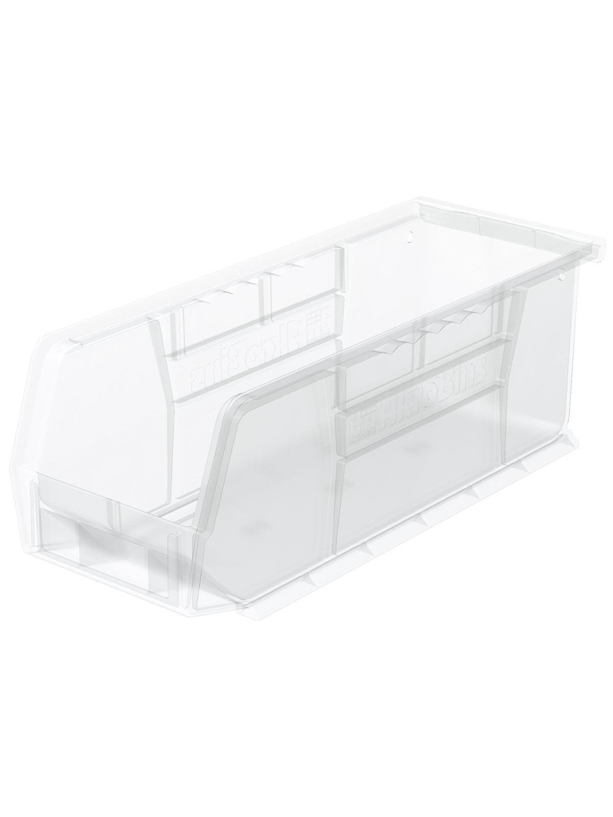 AkroBins are heavy-duty and securely stack on top of each other, sit on shelving, and hang from Akro-Mils racks, panels, rails and carts. Unaffected by weak acids and alkalis the sturdy one piece construction is water, rust and corrosion-proof. Finger grip allows for easy handling. Large label slot for easy identification of contents. Autoclavable up to 250° F. Guaranteed not to crack or break under normal load conditions as stated in the 1-year limited warranty. Optional dividers and labels available, see Related Items tab. AkroBins available in Red, Yellow, Blue, Green, Black, Stone, and Semi-Clear. FOB Shipping Point.