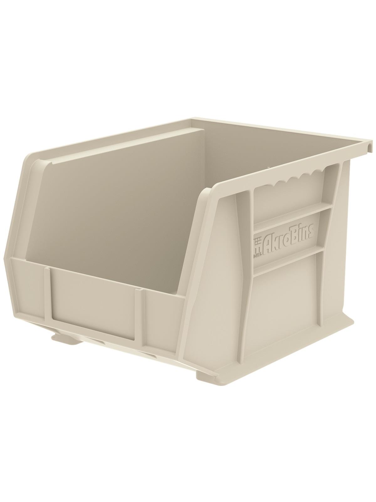 AkroBins are heavy-duty and securely stack on top of each other, sit on shelving, and hang from Akro-Mils racks, panels, rails and carts. Unaffected by weak acids and alkalis the sturdy one piece construction is water, rust and corrosion-proof. Finger grip allows for easy handling. Large label slot for easy identification of contents. Autoclavable up to 250° F. Guaranteed not to crack or break under normal load conditions as stated in the 1-year limited warranty. Optional dividers and labels available, see Related Items tab. AkroBins available in Red, Yellow, Blue, Green, Black, Stone, and Semi-Clear. FOB Shipping Point.