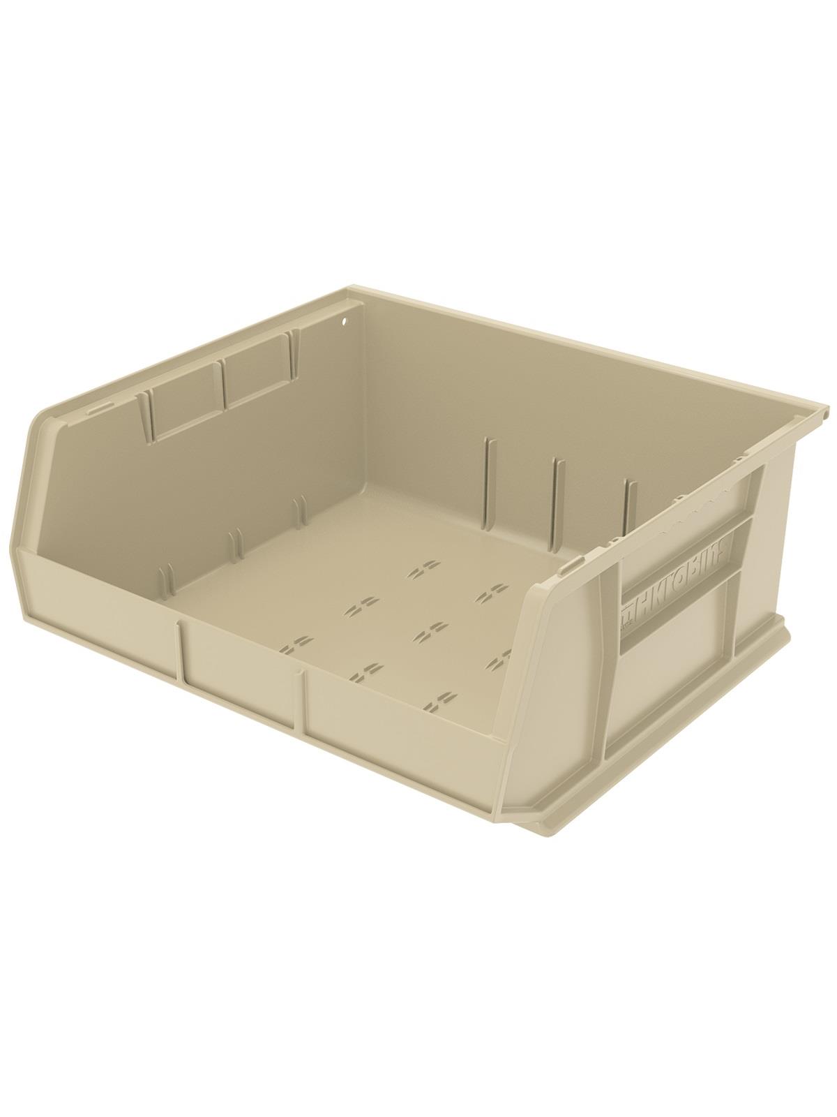 AkroBins are heavy-duty and securely stack on top of each other, sit on shelving, and hang from Akro-Mils racks, panels, rails and carts. Unaffected by weak acids and alkalis the sturdy one piece construction is water, rust and corrosion-proof. Finger grip allows for easy handling. Large label slot for easy identification of contents. Autoclavable up to 250° F. Guaranteed not to crack or break under normal load conditions as stated in the 1-year limited warranty. Optional dividers and labels available, see Related Items tab. AkroBins available in Red, Yellow, Blue, Green, Black, Stone, and Semi-Clear. FOB Shipping Point.