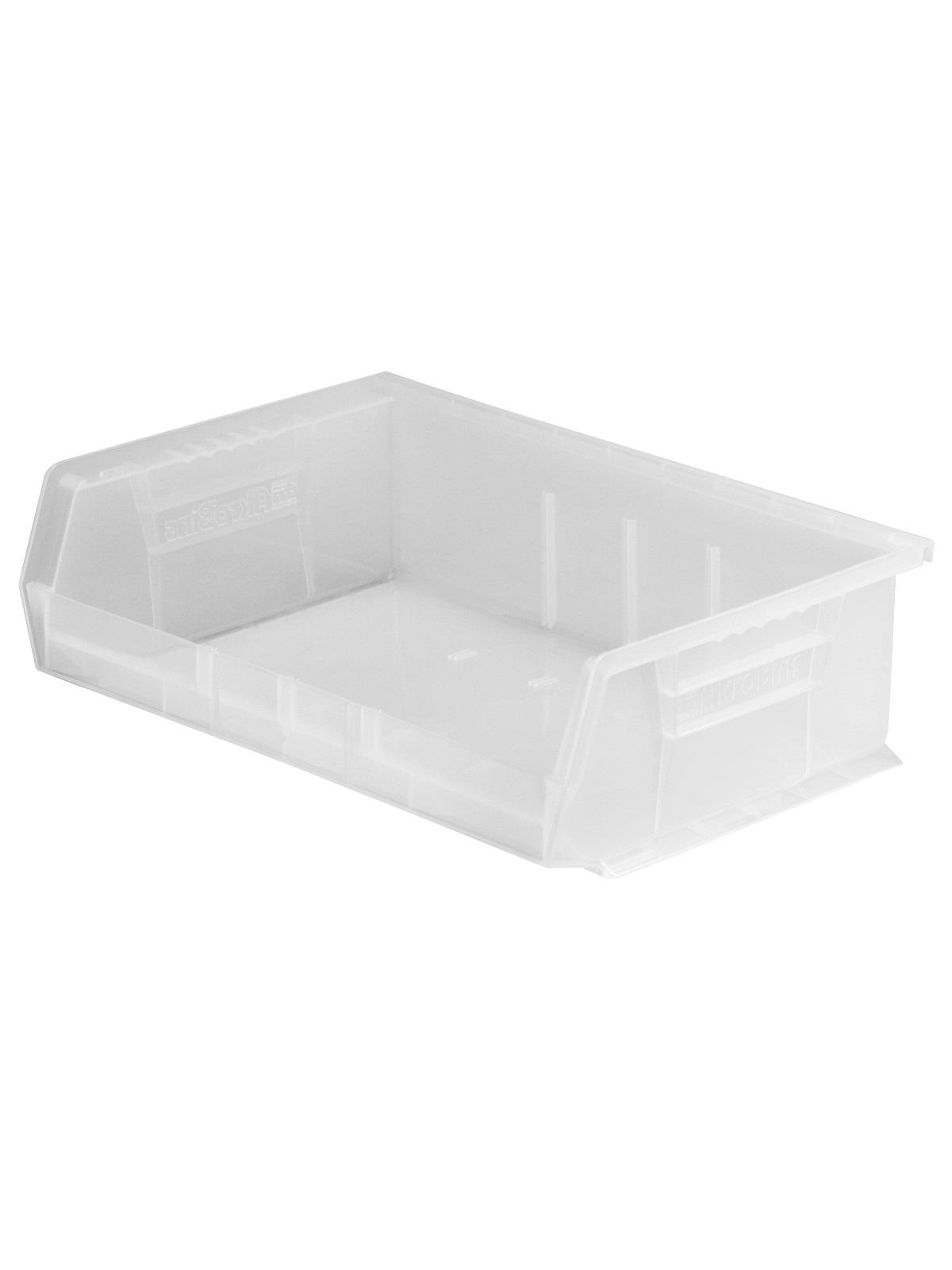 AkroBins are heavy-duty and securely stack on top of each other, sit on shelving, and hang from Akro-Mils racks, panels, rails and carts. Unaffected by weak acids and alkalis the sturdy one piece construction is water, rust and corrosion-proof. Finger grip allows for easy handling. Large label slot for easy identification of contents. Autoclavable up to 250° F. Guaranteed not to crack or break under normal load conditions as stated in the 1-year limited warranty. Optional dividers and labels available, see Related Items tab. AkroBins available in Red, Yellow, Blue, Green, Black, Stone, and Semi-Clear. FOB Shipping Point. Surcharge may apply.