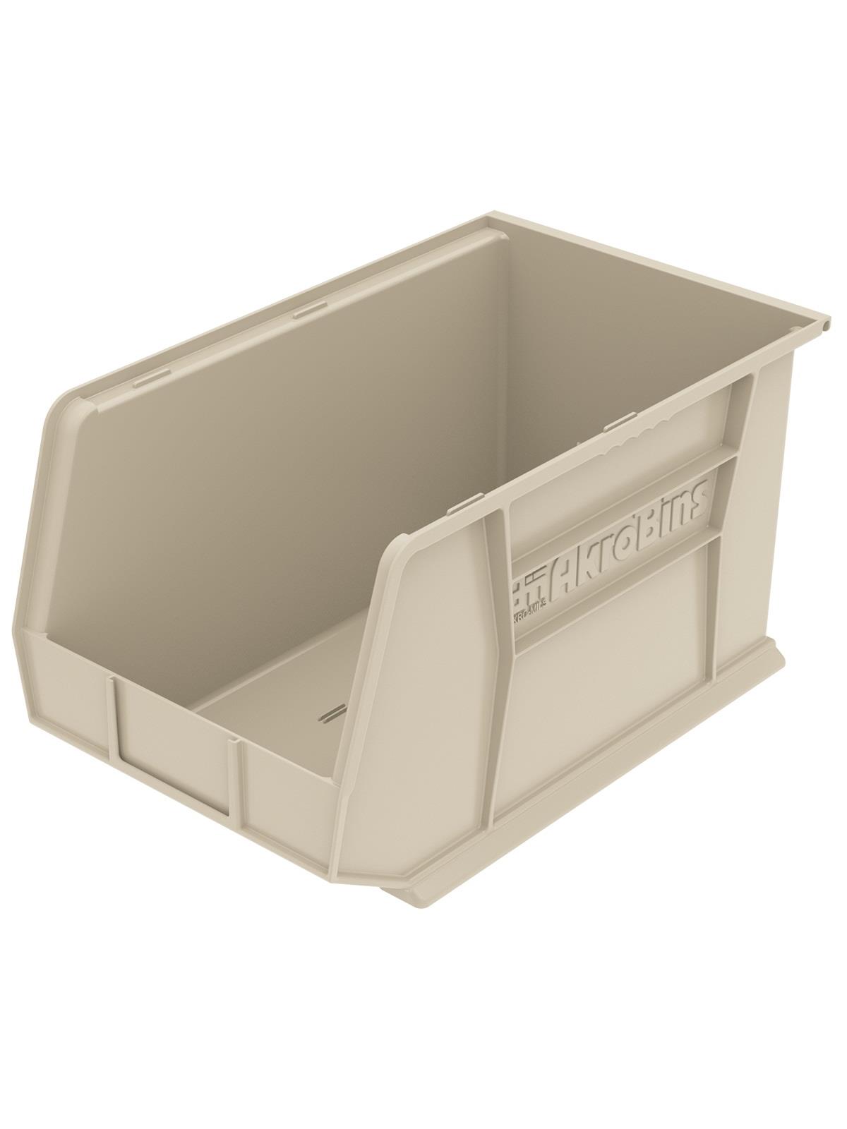 AkroBins are heavy-duty and securely stack on top of each other, sit on shelving, and hang from Akro-Mils racks, panels, rails and carts. Unaffected by weak acids and alkalis the sturdy one piece construction is water, rust and corrosion-proof. Finger grip allows for easy handling. Large label slot for easy identification of contents. Autoclavable up to 250° F. Guaranteed not to crack or break under normal load conditions as stated in the 1-year limited warranty. Optional dividers and labels available, see Related Items tab. AkroBins available in Red, Yellow, Blue, Green, Black, Stone, and Semi-Clear. FOB Shipping Point.