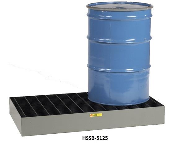 Heavy gauge steel construction for storage of materials that are not compatible with plastic. Sumps and ramps have durable powder coated finish. Welded bar grating can be removed for cleaning. Fork Liftable Ramp optional. FOB Shipping Point.