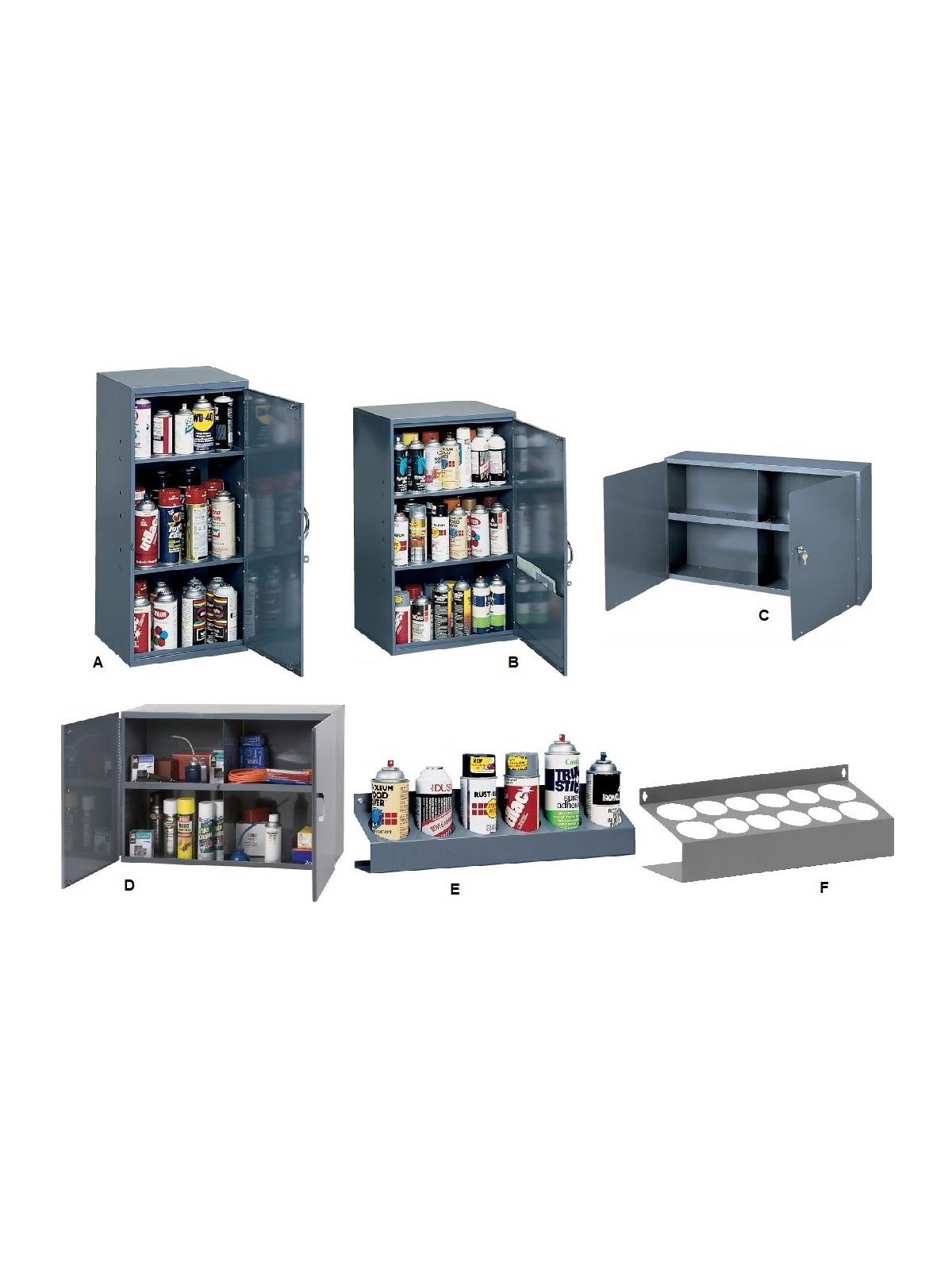 Aerosol Can Caddy...Holds 6 or 12 standard sized aerosol cans. Unit can be wall mounted, fastened to a tool box, or placed on a shelf or counter top.
