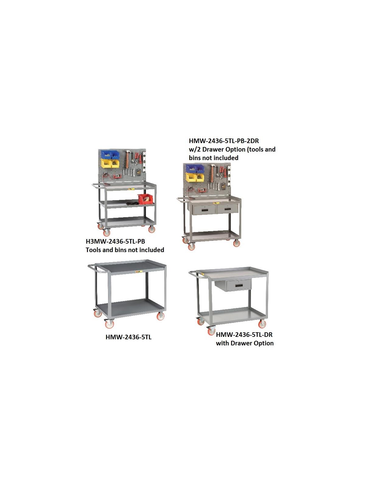 HMW-2436-5TL-PB-2DR 2 Shelf Unit w/Pegboard Panel and 2 Drawer 24-1/2" 24 x 36" 102 $1,000.27