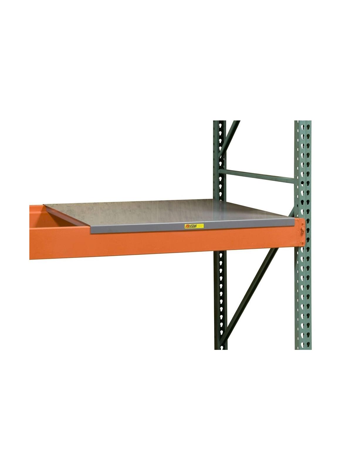 Smooth 14 gauge steel surface with durable powder coated finish. Perforated decking has 1" diameter holes. 12 gauge reinforced channels on underside fit 1-5/8" step beams. 1-1/2" waterfall on front and back edges. Each decking section has a load capacity of 3,000 lbs. FOB Shipping Point.