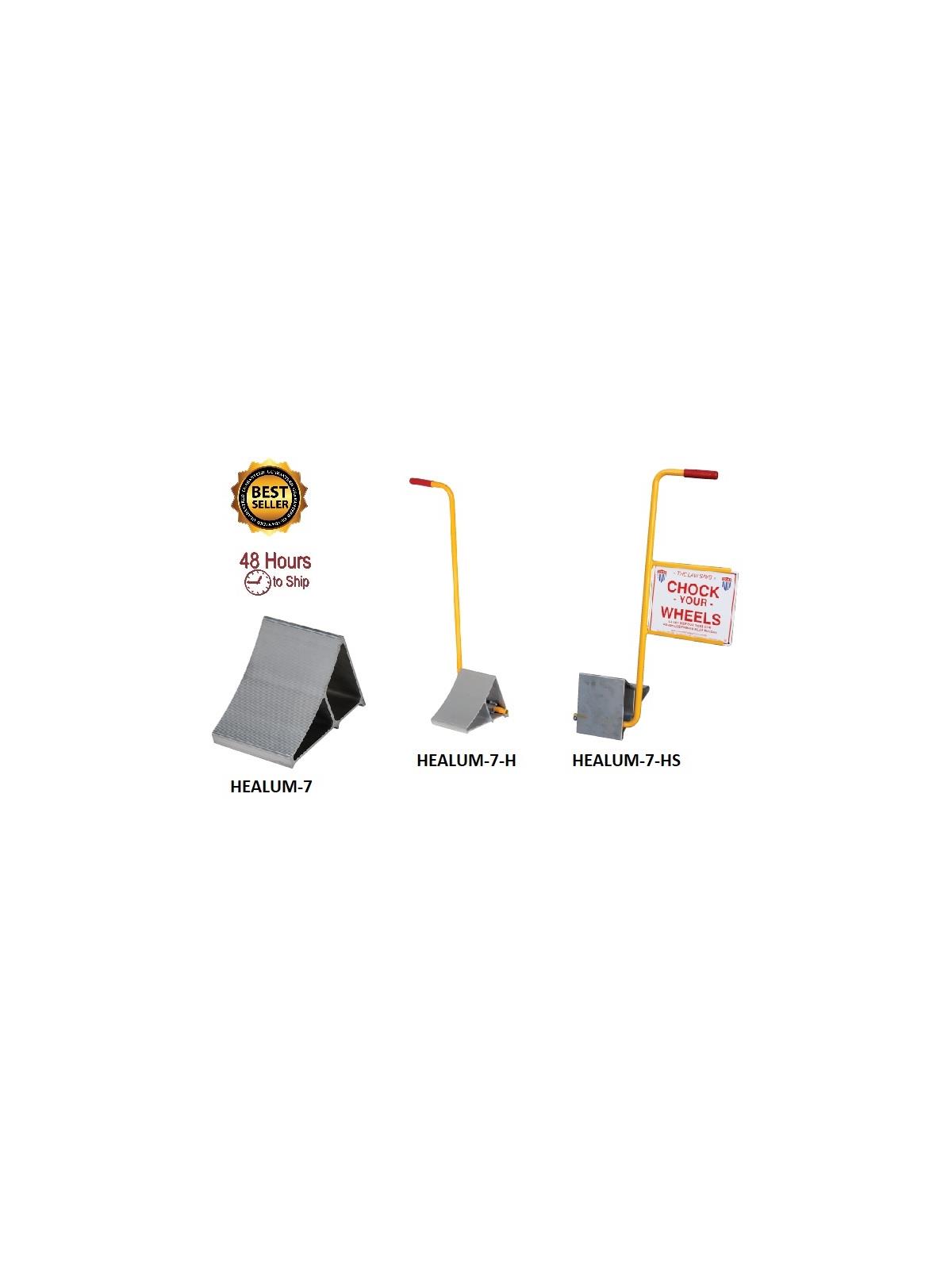Constructed of extruded lightweight aluminum that is easy to handle. Features a serrated top to grip the tire and a triple edged bottom to grip the ground. Chock size is 7 x 8 x 11-3/4". FOB Shipping Point. Due to tariffs and market conditions, pricing subject to change. See Related Items tab for Wheel Chock Accessories.