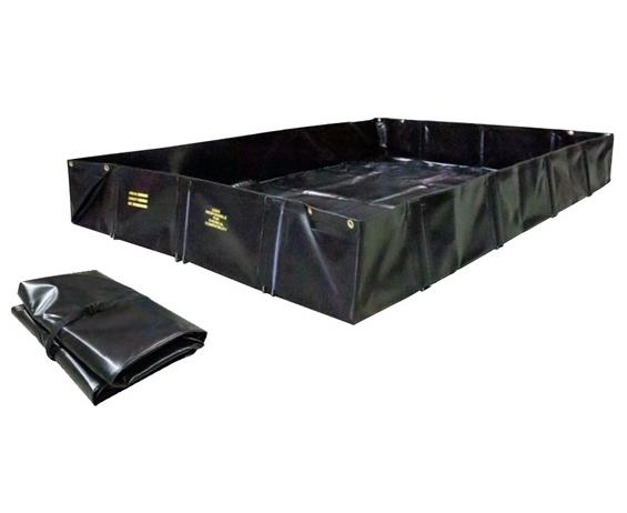 Bracket QuickBerm® is an economical option as a secondary spill containment berm. Light enough to carry but tough enough for containing vehicles, generators, transformers, palletized 55-gallon drums, or other hazard materials. Other applications include DECON operations for personnel or equipment. To deploy the black Angle Bracket QuickBerm, simply unfold and insert the in-wall angle support braces. Once assembled, this flexible containment unit will provide a clean perimeter with no triangulated wall brace supports in the way. QuickBerm® is made out of Modified PVC coated fabric. FOB Shipping Point.