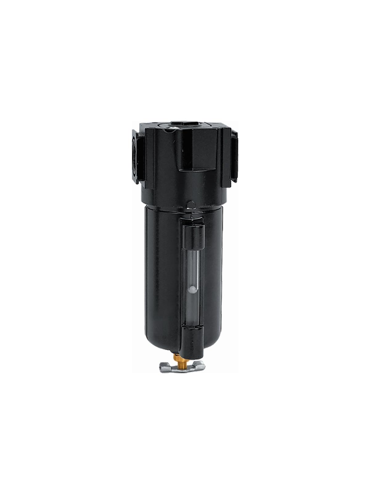 1/2" Standard Particulate Water Removing Filter. 40 Micron Sintered Bronze Element. 6 oz. Metal Bowl with Sight Glass. Manual Drain. 100 SCFM. 50 PSI Max. FOB Shipping Point. Surcharge may apply.