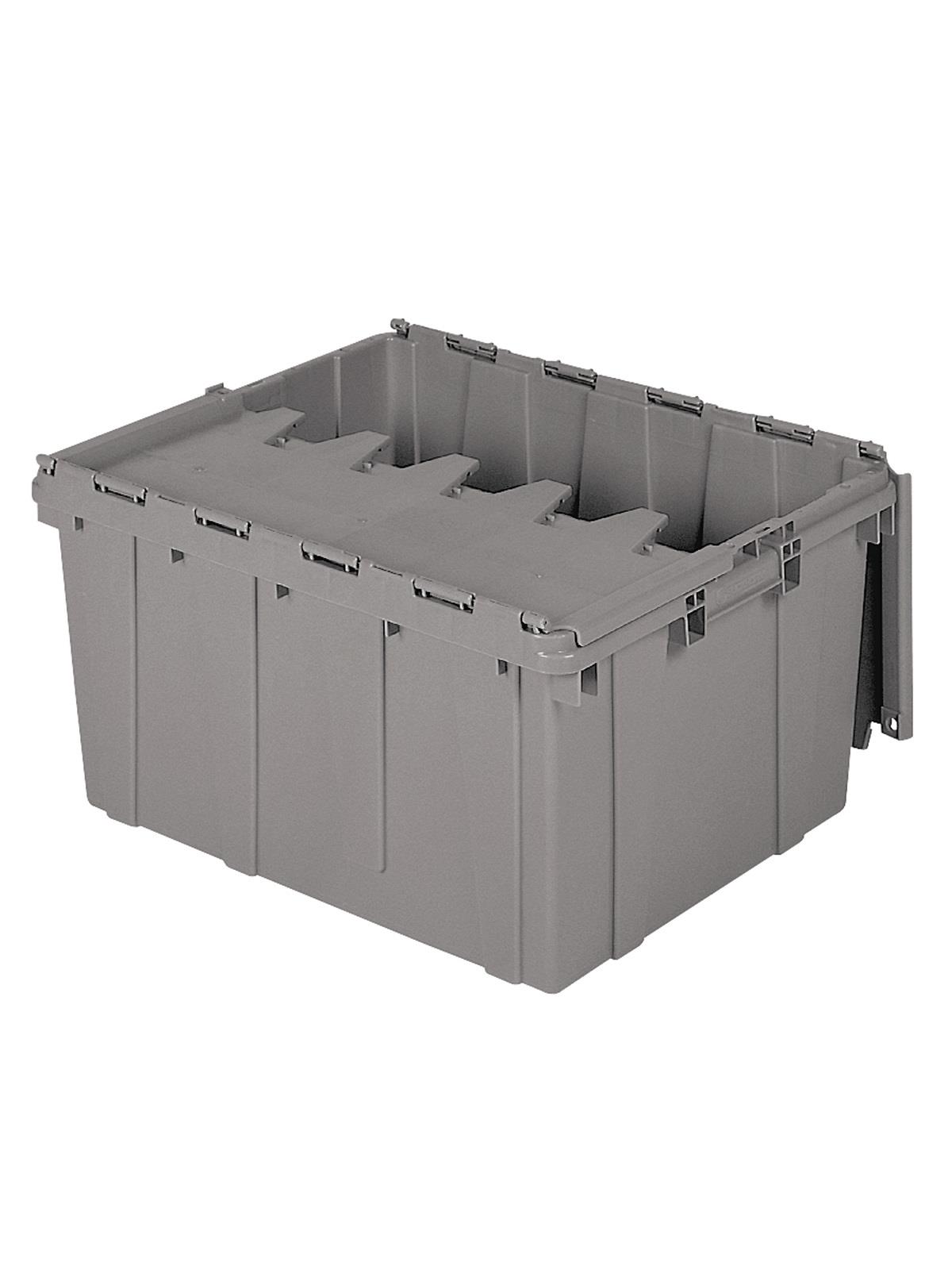 • These industrial strength Attached Lid Containers form a reusable, versatile, economical system for order picking, distribution, shipping or storage.