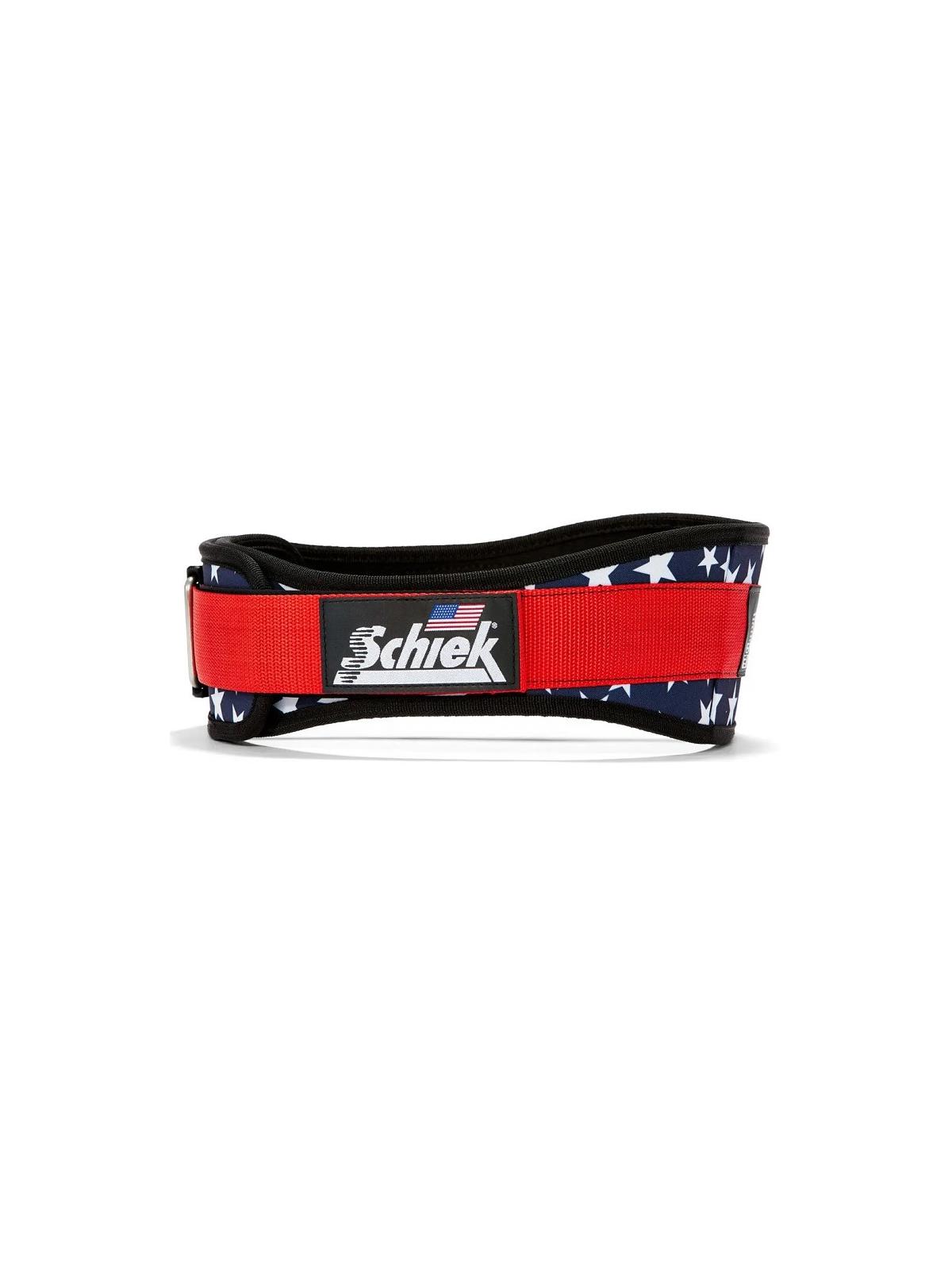 This comfortable, durable lumbar support provides the comfort of an elastic belt with the support of a non-stretch belt. Signature Schiek hip and rib contour prevents belt from digging into your sides. Stainless steel buckle will not "pop open" under pressure and has Schiek's unique one way one way Velcro closure for a customized fit. Available in 6" and 4-3/4" widths. Available in Black, Navy Blue, Royal Blue, Red, Forest Green or Stars'n Stripes. 2 Year Warranty. FOB Shipping Point. ** Custom logo available** Please call for details. Sizes: XS 24-28, S 27-32, M 31-36, L 34-41, XL 40-45, 2XL 44-50, 3XL 50-54, (additional $11.54 ea.), 4XL 54-59 (additional $23.08 ea.), 5XL 59-63 (additional $34.62 ea.)