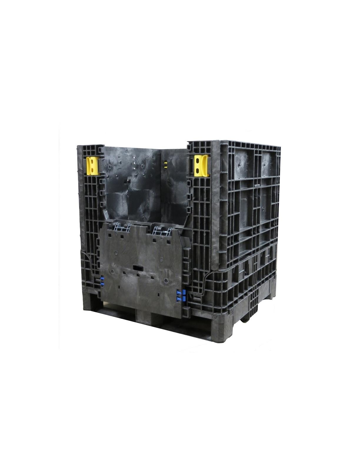 Bulk boxes are great for automotive and industrial manufacturing uses. Durable HDPE construction with thicker sidewalls and high strength bases. Boxes stack securely. Four-way forklift entry. Two doors on length standard. Black in color. FOB Shipping Point.