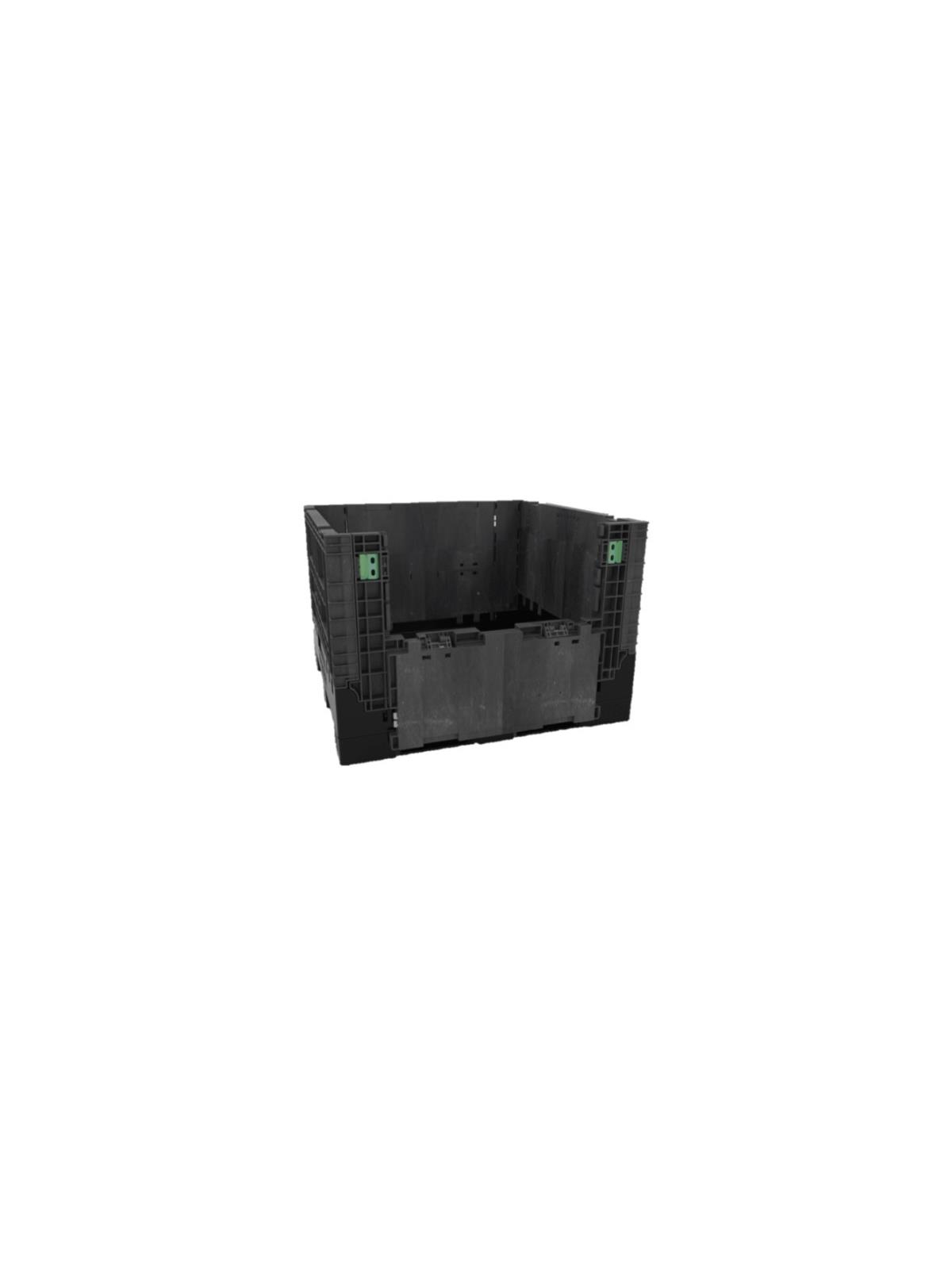 Bulk boxes are great for automotive and industrial manufacturing uses. Durable HDPE construction with thicker sidewalls and high strength bases. Boxes stack securely. Four-way forklift entry. Two doors on length standard. Black in color. FOB Shipping Point.