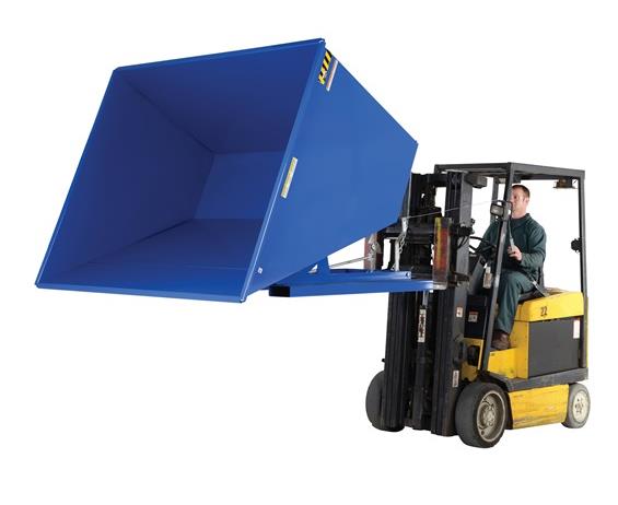This bumper release hopper dumps as soon as the bumper is pushed. This style also returns to the locked position automatically after it dumps. A safety lock is standard on both styles to prevent accidental dumping. A safety restraint is provided to secure the hopper to the forklift. Fork pockets measure 7 1/2" x 2 1/2". Vestil self-dumping hoppers facilitate compliance with OSHA General Industry rule 29 CFR 1910.178(m)(5)(iii) by allowing lift truck operators to remain at the controls of their truck throughout the dumping process. FOB Shipping Point. Due to tariffs and market conditions, pricing subject to change. See Related Items tab below for Lids for Steel Hoppers and Casters for Steel Hoppers.