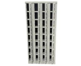 These new cellphone and tablet lockers provide a secure location to store valuable electronics and other personal items. Robust construction including 18 ga. doors, padlock hasps, piano hinges, and solid steel back and sides deter theft. Lockers come in a standard 32 compartment configuration with the ability to add additional rows of storage with simple nut and bolt installation. Available in light gray. FOB Shipping Point. Steel surcharge may apply.