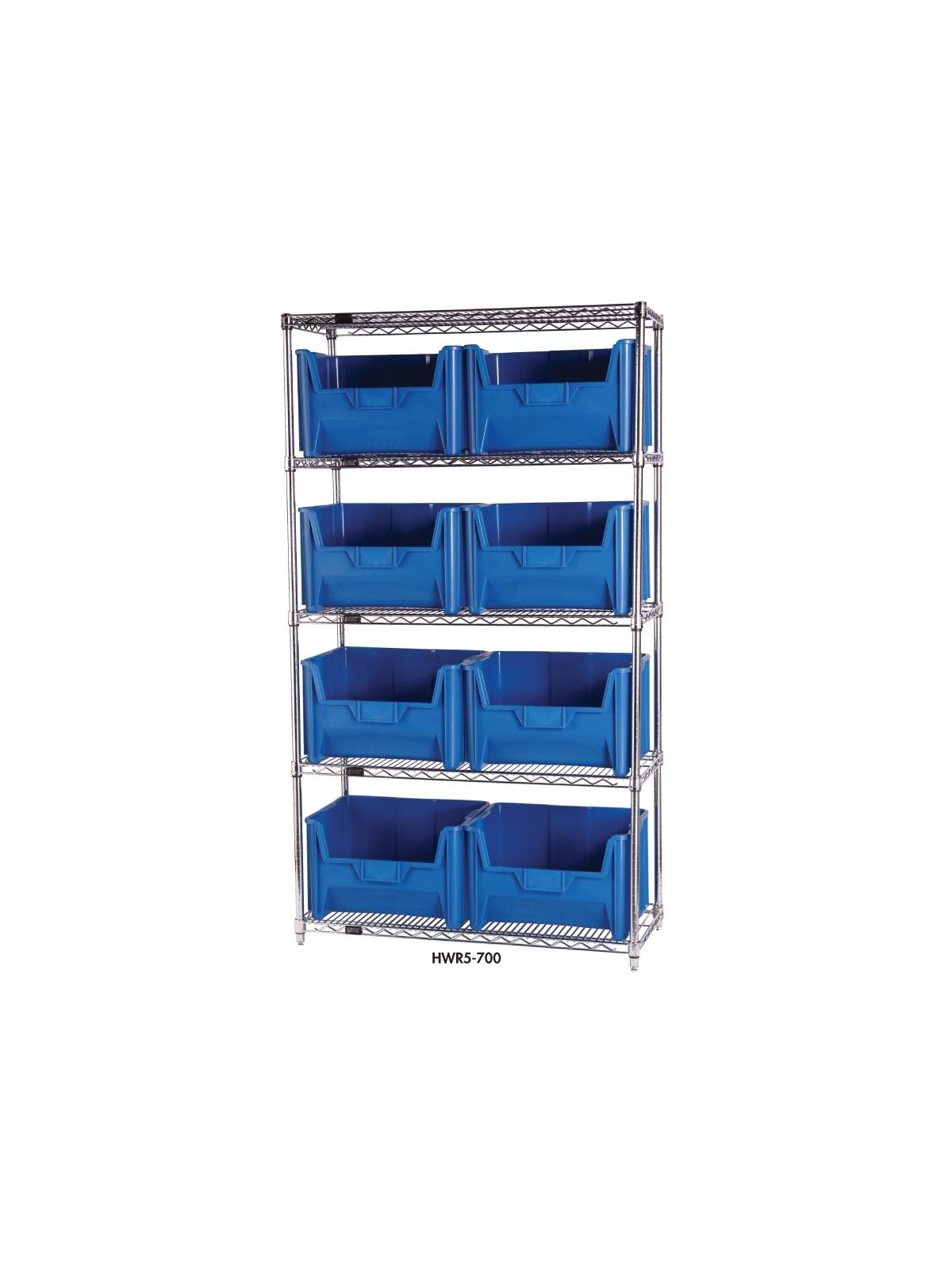 See Related Items tab for Chrome Wire Shelving Units with Shelf Bins, Chrome Wire Shelving Units with Ultra Bins, Chrome Wire Shelving Units with Magnum Bins and Chrome Wire Shelving Units with Hulk Containers.