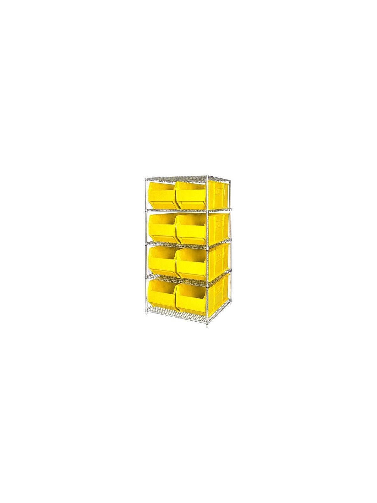Combine stylish chrome shelving and parts organizing bins. Sturdy shelving unit supports loads up to 800 lbs. Choice of bins. Easy to assemble. Hulk Containers are available in Blue, Red and Yellow. FOB Shipping Point.