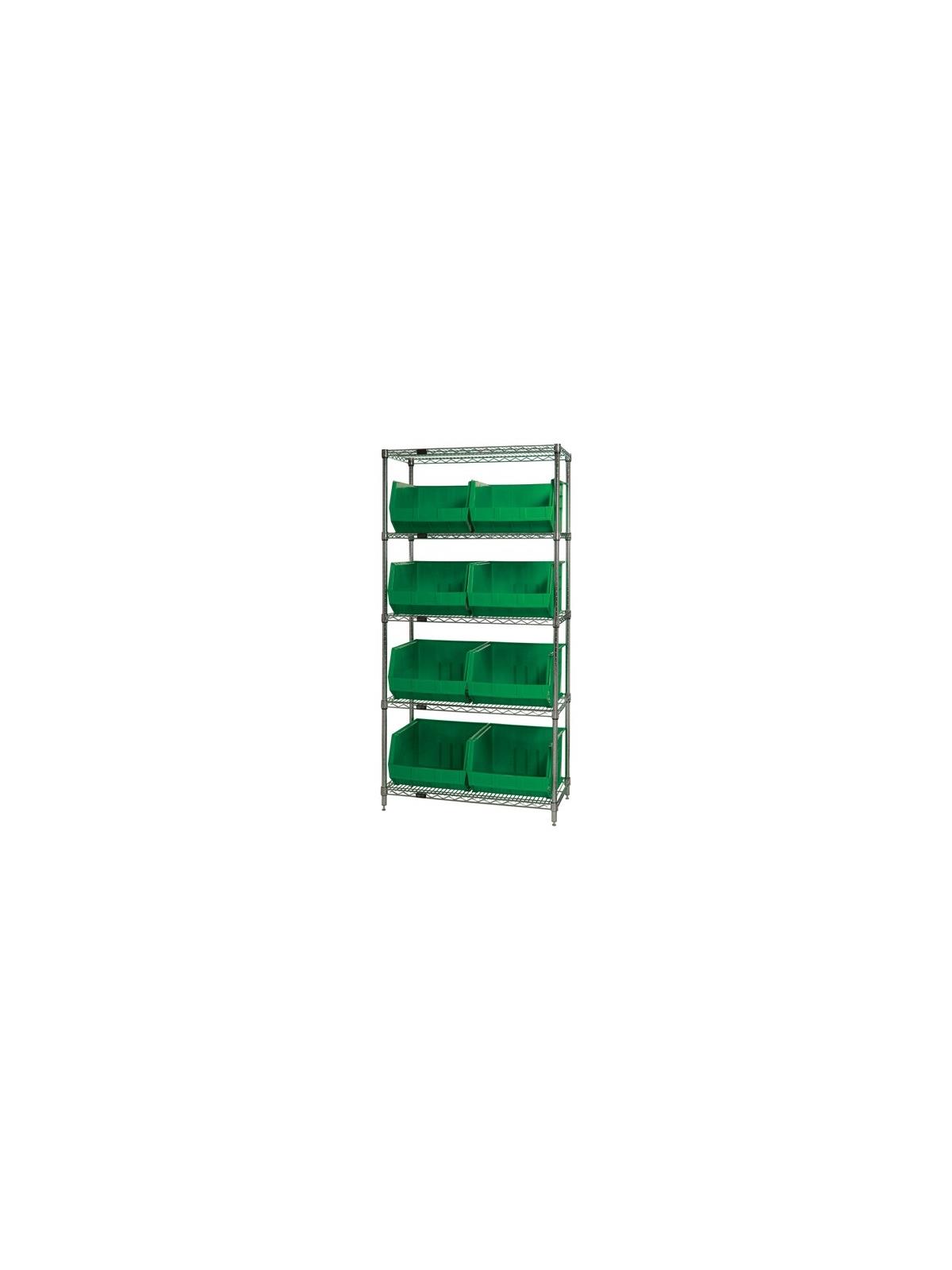 Combine stylish chrome shelving and parts organizing bins. Sturdy shelving unit supports loads up to 800 lbs. Choice of bins. Easy to assemble. Ultra Bins are available in Blue, Red, Yellow, Green, Ivory or Black. FOB Shipping Point.