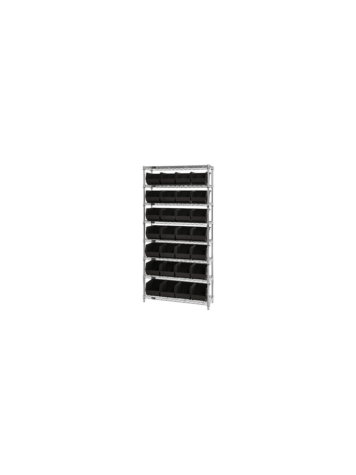 Combine stylish chrome shelving and parts organizing bins. Sturdy shelving unit supports loads up to 800 lbs. Choice of bins. Easy to assemble. Ultra Bins are available in Blue, Red, Yellow, Green, Ivory or Black. FOB Shipping Point.