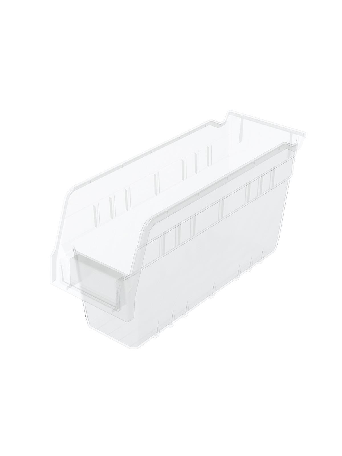 Clear 6" ShelfMax® Bins expand storage capacity up to 85% over standard 4" bins. Rolled top edge for added strength when filled to capacity. Durable clear polypropylene construction. Optional lids and dividers available. FOB Shipping Point.