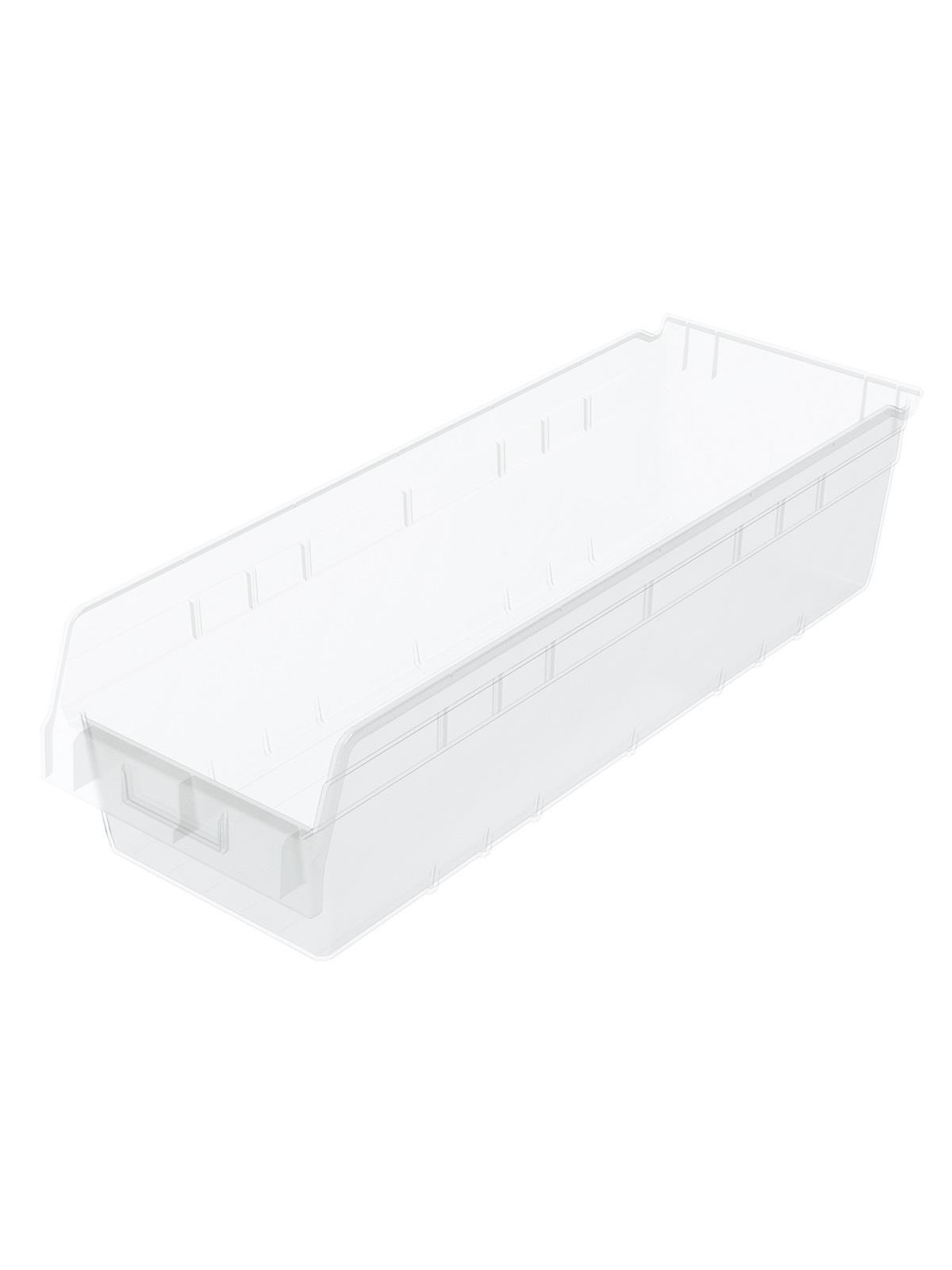 Clear 6" ShelfMax® Bins expand storage capacity up to 85% over standard 4" bins. Rolled top edge for added strength when filled to capacity. Durable clear polypropylene construction. Optional lids and dividers available. FOB Shipping Point. Surcharge may apply.